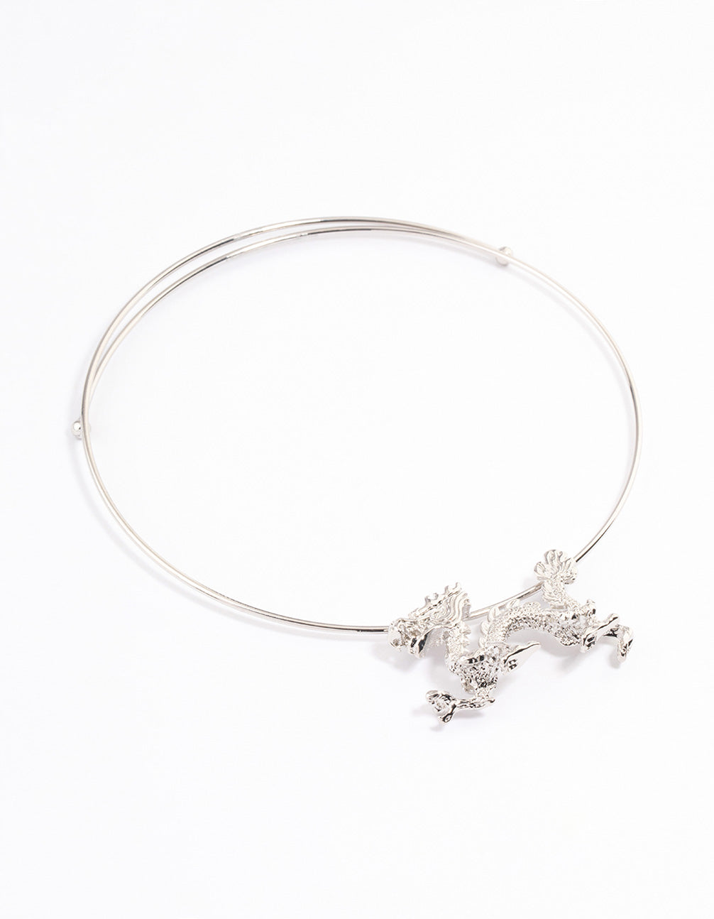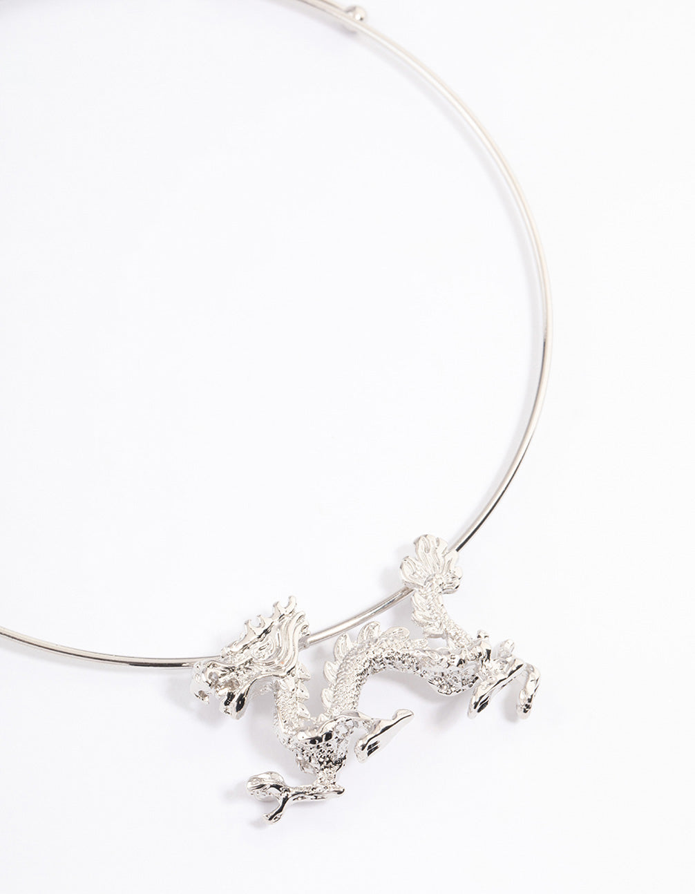 Style this silver-toned, wire dragon necklace with our matching silver-toned dragon stud earrings for a cohesive look.