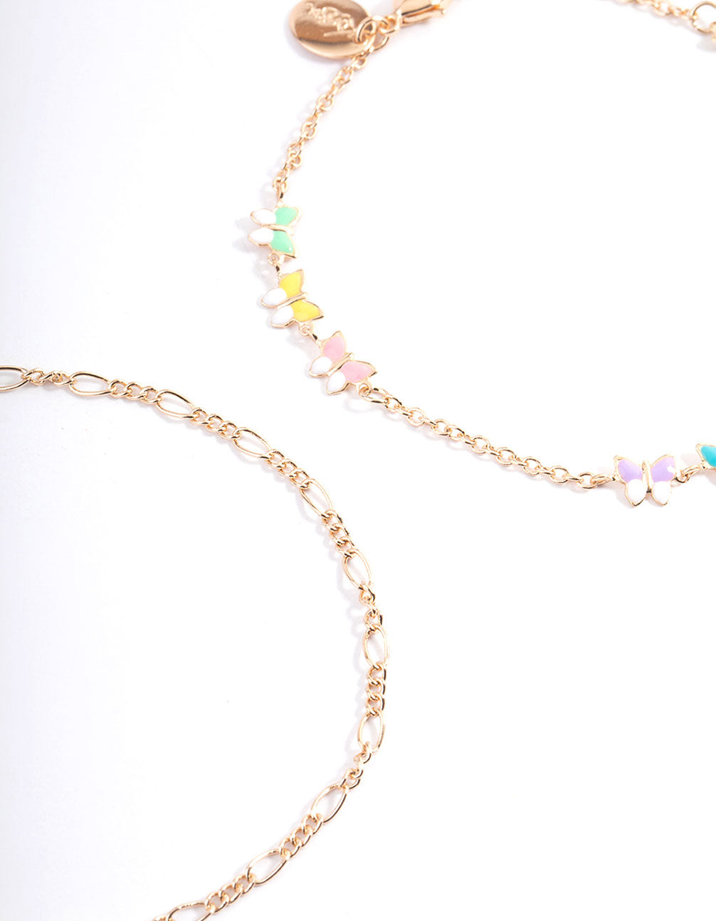 - This gold-toned anklet features multiple butterfly charms for a nostalgic, dainty look!
