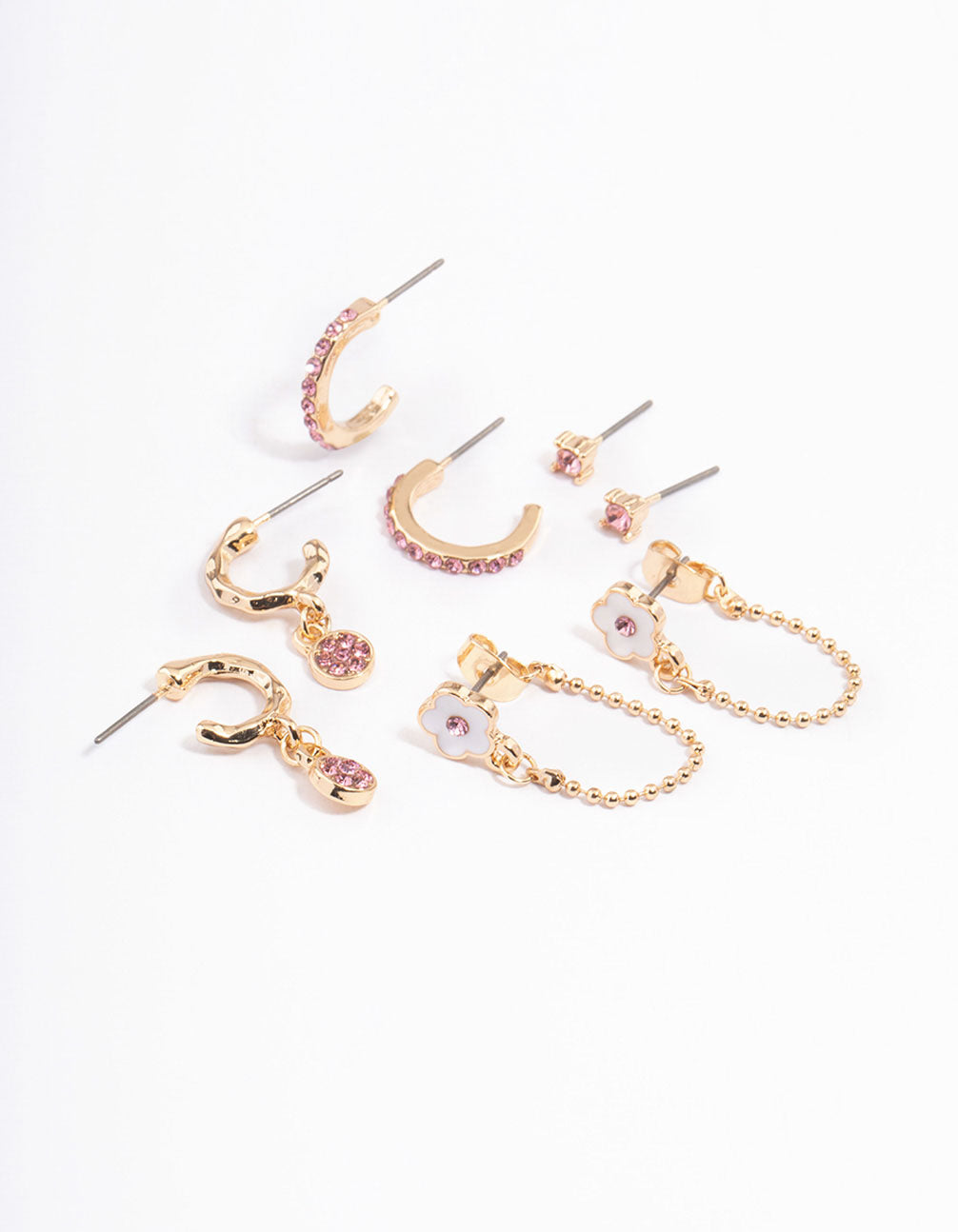 - Style these pink, flower chain stacker earrings with an adorning ring stack for a layered look.