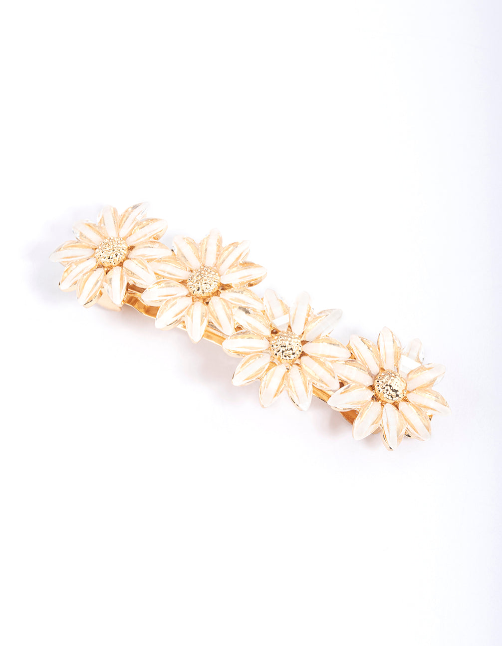 Elevate your look with premium accessories from our Occasion Hair Collection! Choose from dainty hair drapes, unique clips and claws for a fabulous, finishing touch to your event ensemble. Style this gold-toned daisy flower clip with some matching floral accessories for a cohesive look.