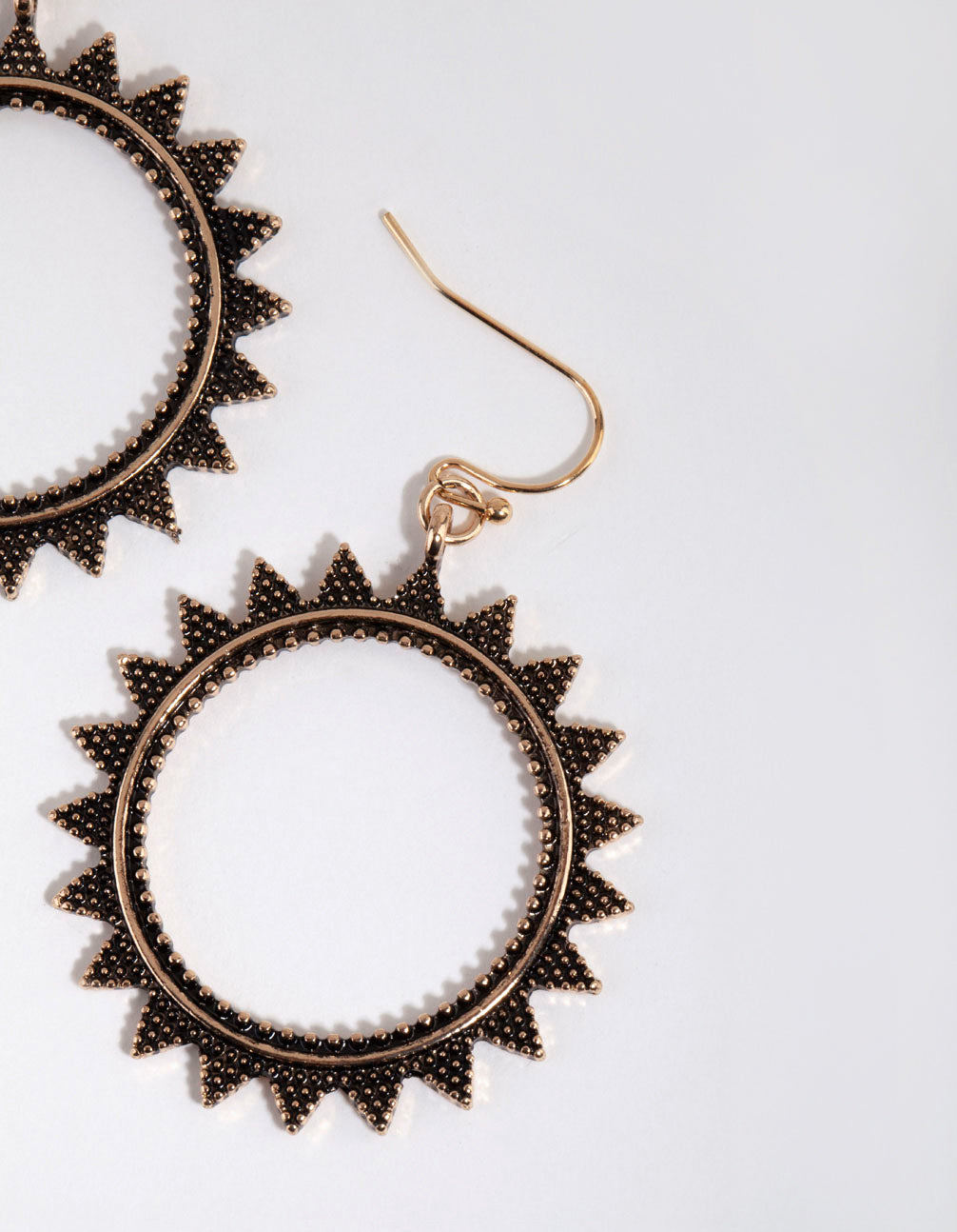Let these earrings shine above any ensemble with their textured sun motif in a gold tone.