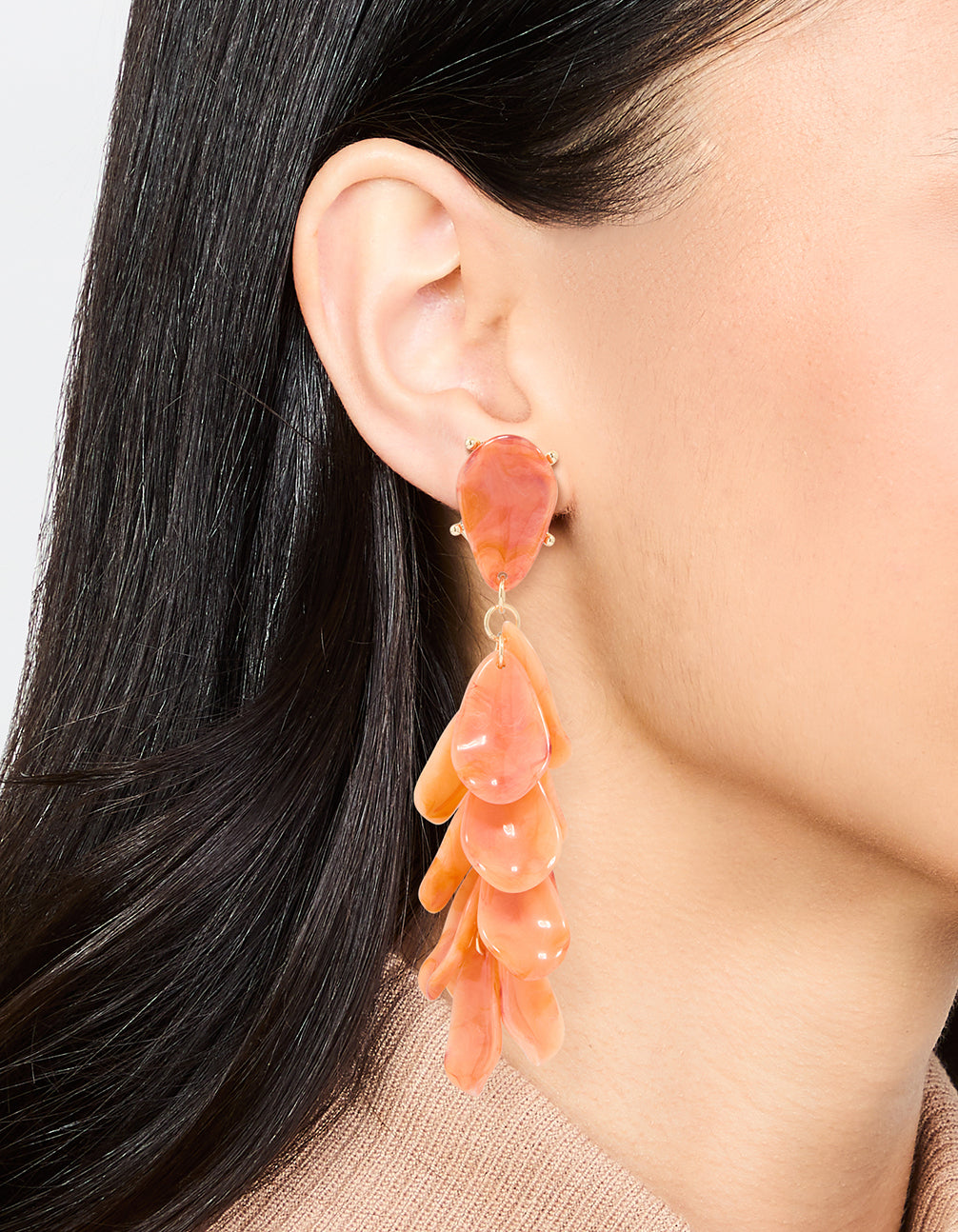 Orange Acrylic Petal Cluster Drop Earrings