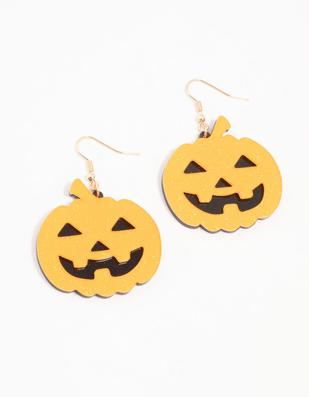 Orange Acrylic Scary Pumpkin Drop Earrings