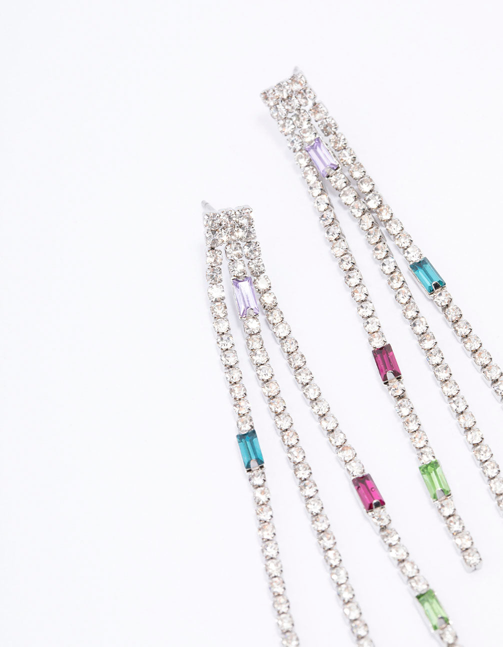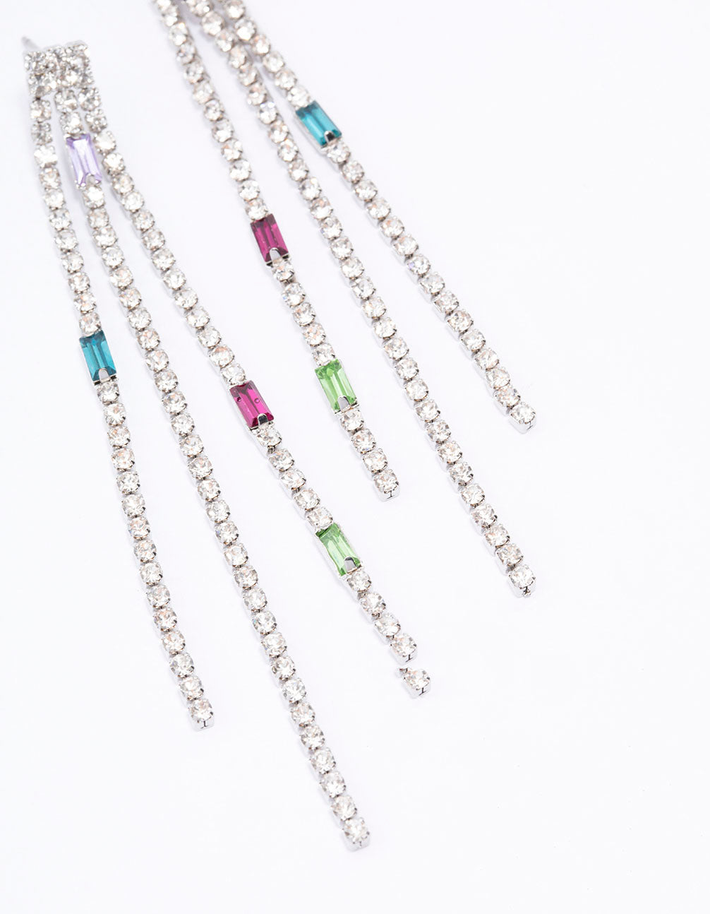 - These silver-toned statement earrings feature a collection of cup chain strands embellished with colourful gems for an eye-catching finish.