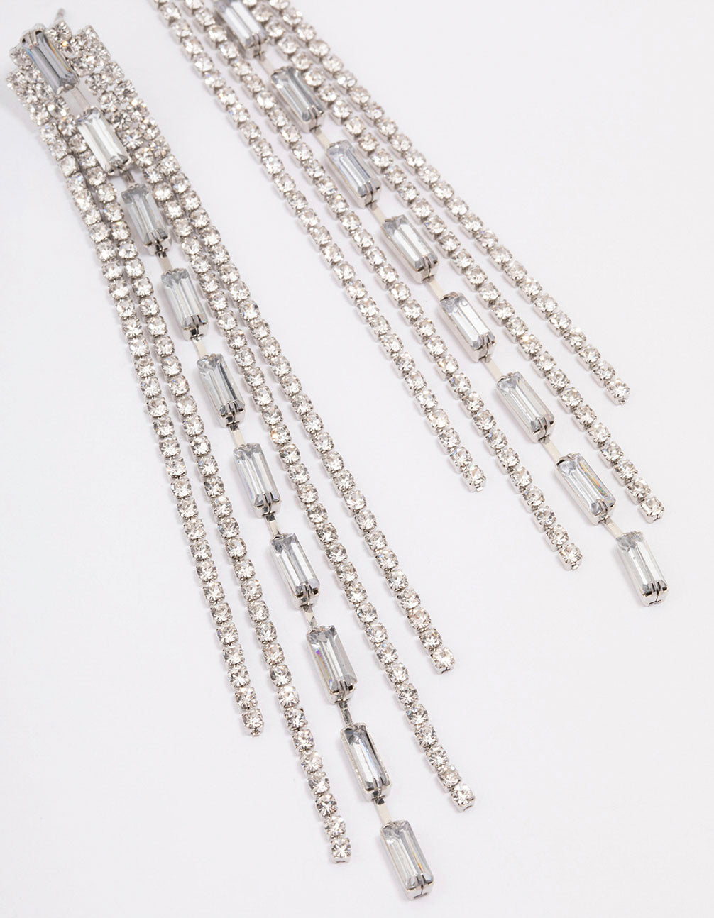 - These silver statement earrings feature a cascade of diamante strands for an eye-catching finish.