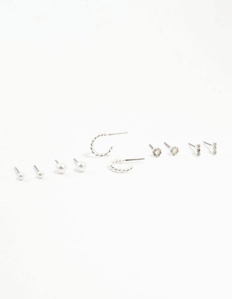 Be spoiled for choice with this sparkling 5-pack of stud earrings, featuring chic pearls and diamante detailing. The timeless, versatile styles are perfect for creating a unique look or for an instant style boost.