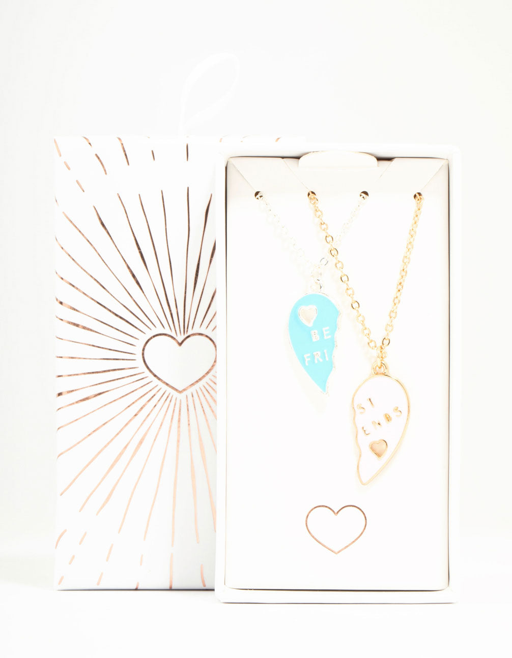 Celebrate your friendship with this chic set of mixed-metal best friend necklaces. The pink and blue heart pendants complement each other beautifully. This unique set is a memorable gift that honours your bond.
