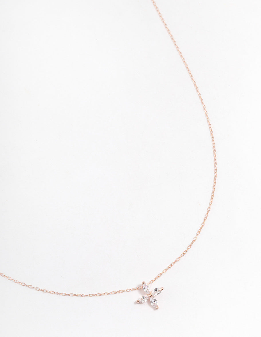 Rose Gold Plated Sterling Silver Marquise Flower Cubic Zirconia Necklace