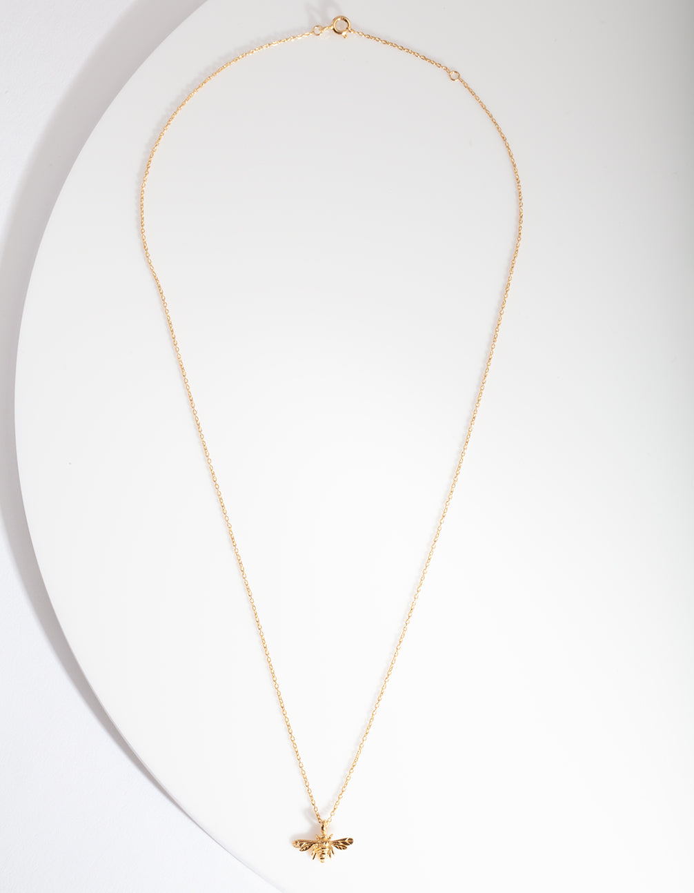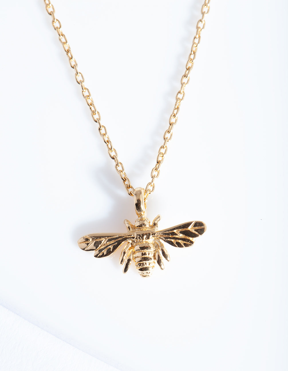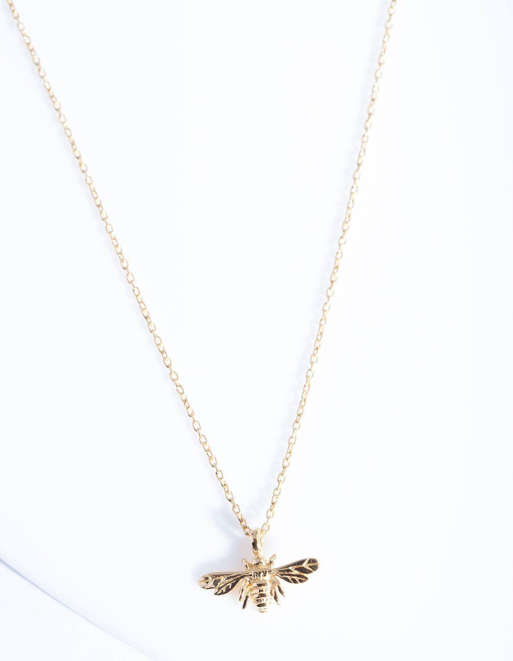 Gold plated sterling silver styles are a great way to round out your collection. This short necklace boasts a bumble bee pendant.