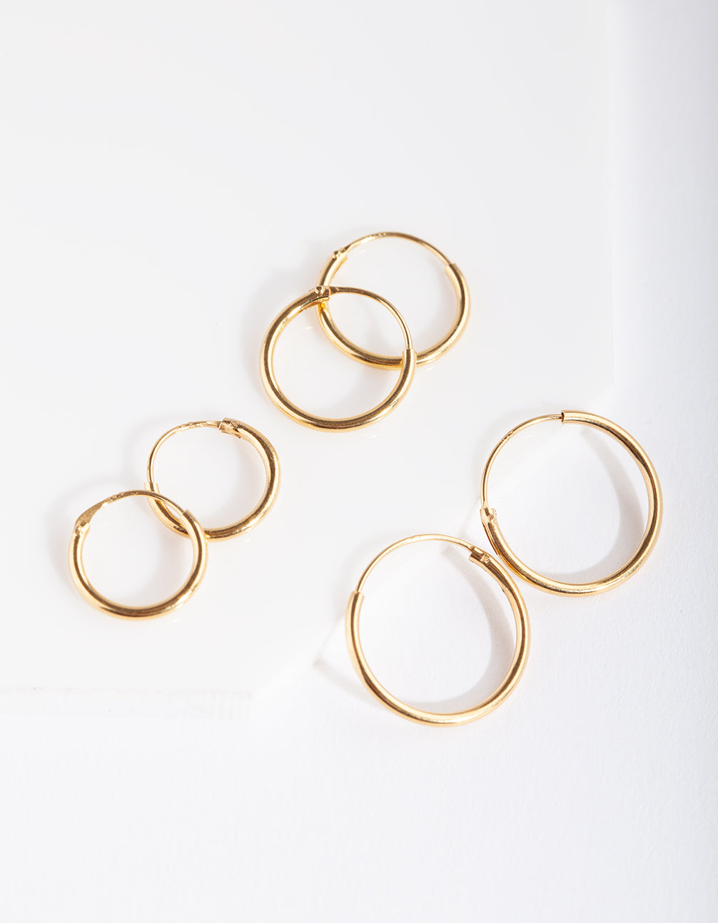 Gold plated sterling silver styles are a great way to round out your collection. this body jewellery pack boasts a trio of classic hoop earrings that are perfect for stacking!