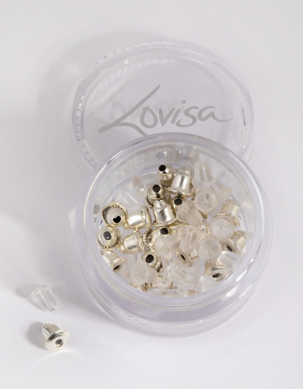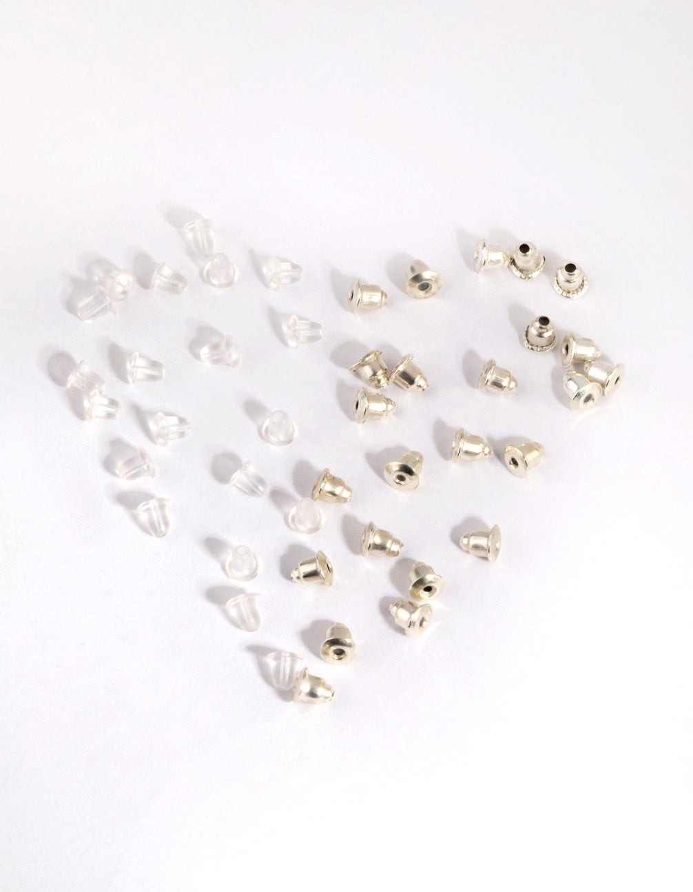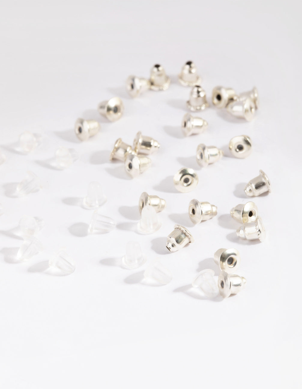 Never worry about losing your earring backs again! This pack includes a range of silver-toned and silicon earring backs, in a small case that will fit perfectly into your handbag or purse.
