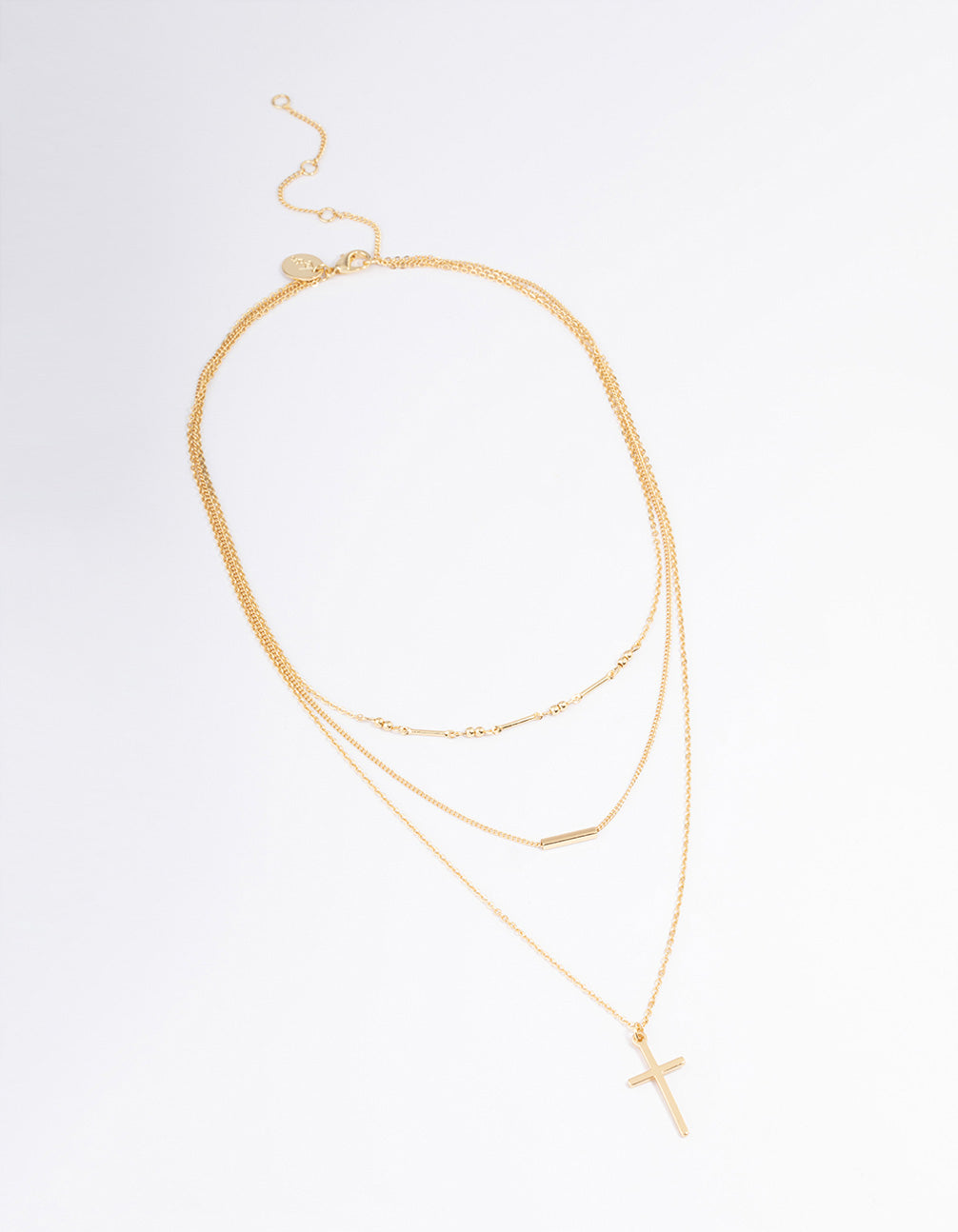 Style this Gold Plated Layered Bar & Cross Necklace with a set of simple studs for a timeless finish.