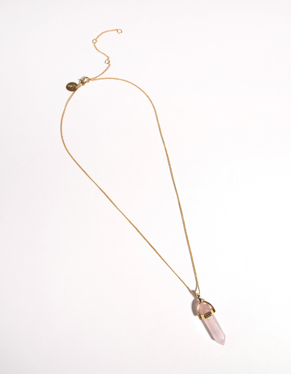 Discover the Semi-Precious Collection, featuring curated jewellery with semi-precious stone elements made to balance and restore. This necklace is plated with real gold, and it features a quartz shard. Rose quartz, with its dreamy pink colour, is said to bring commitment and caring.