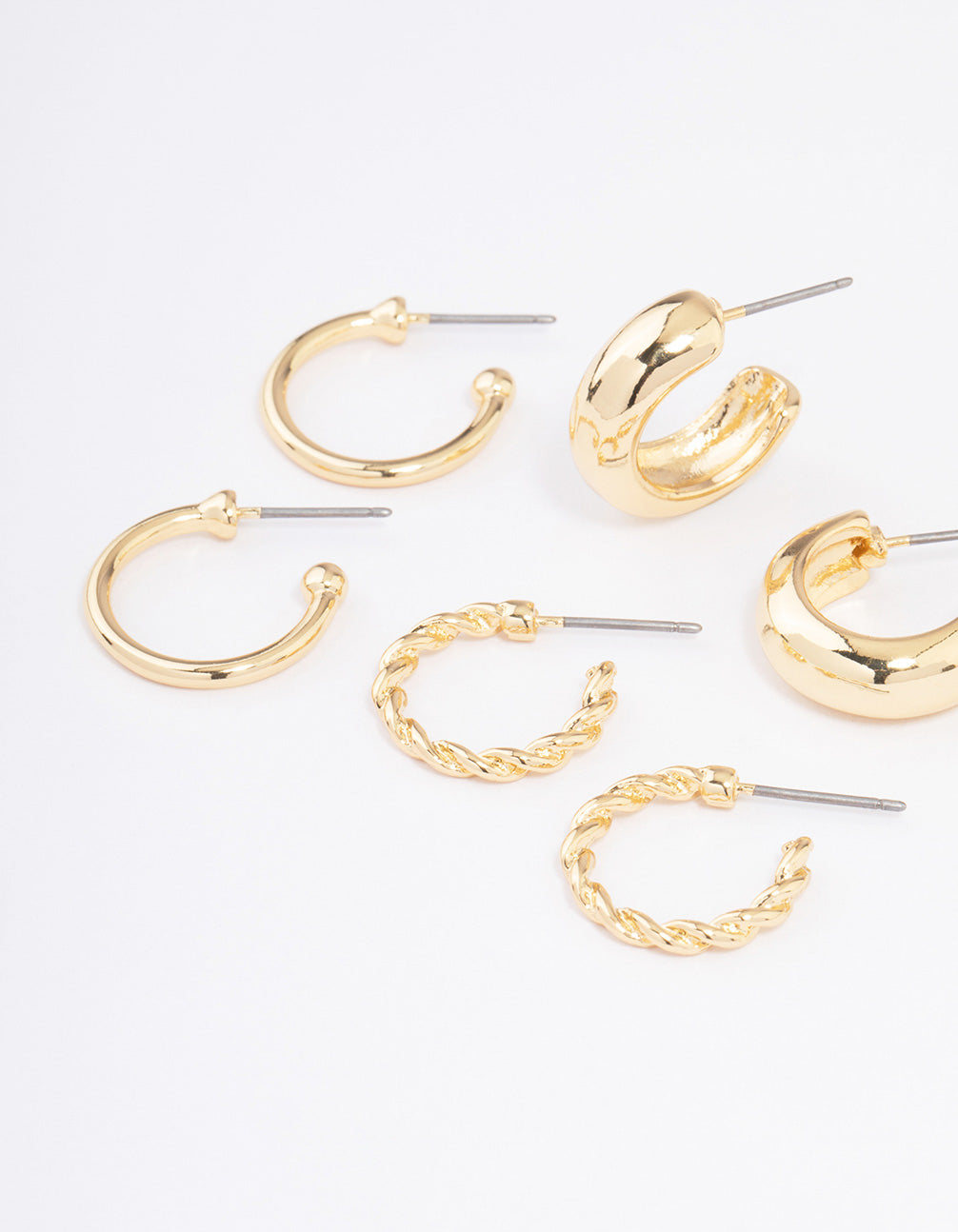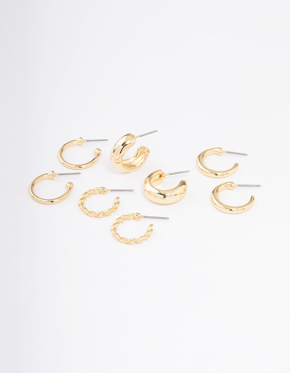 Gold Plated Smooth Chunky Hoop Earrings 4-Pack Gold Plated Smooth Chunky Hoop Earrings 4-Pack Gold Plated Smooth Chunky Hoop Earrings 4-Pack