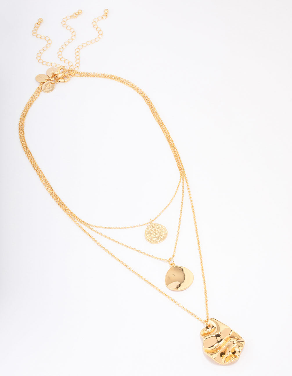 Gold Plated Trio Layered Molten Disc Necklace Gold Plated Trio Layered Molten Disc Necklace Gold Plated Trio Layered Molten Disc Necklace