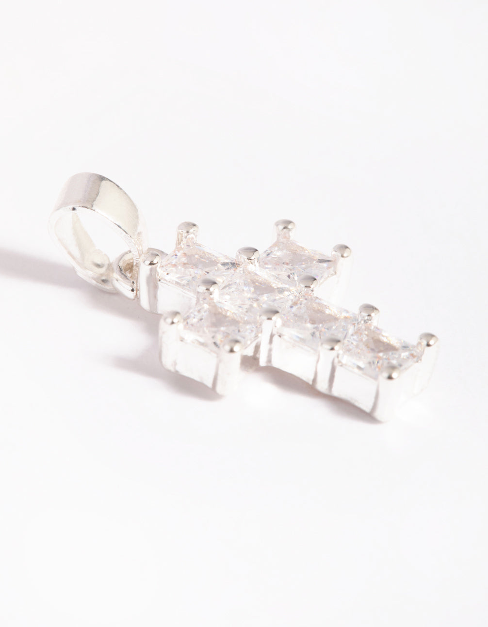 Silver Plated Cross Charm with Cubic Zirconia