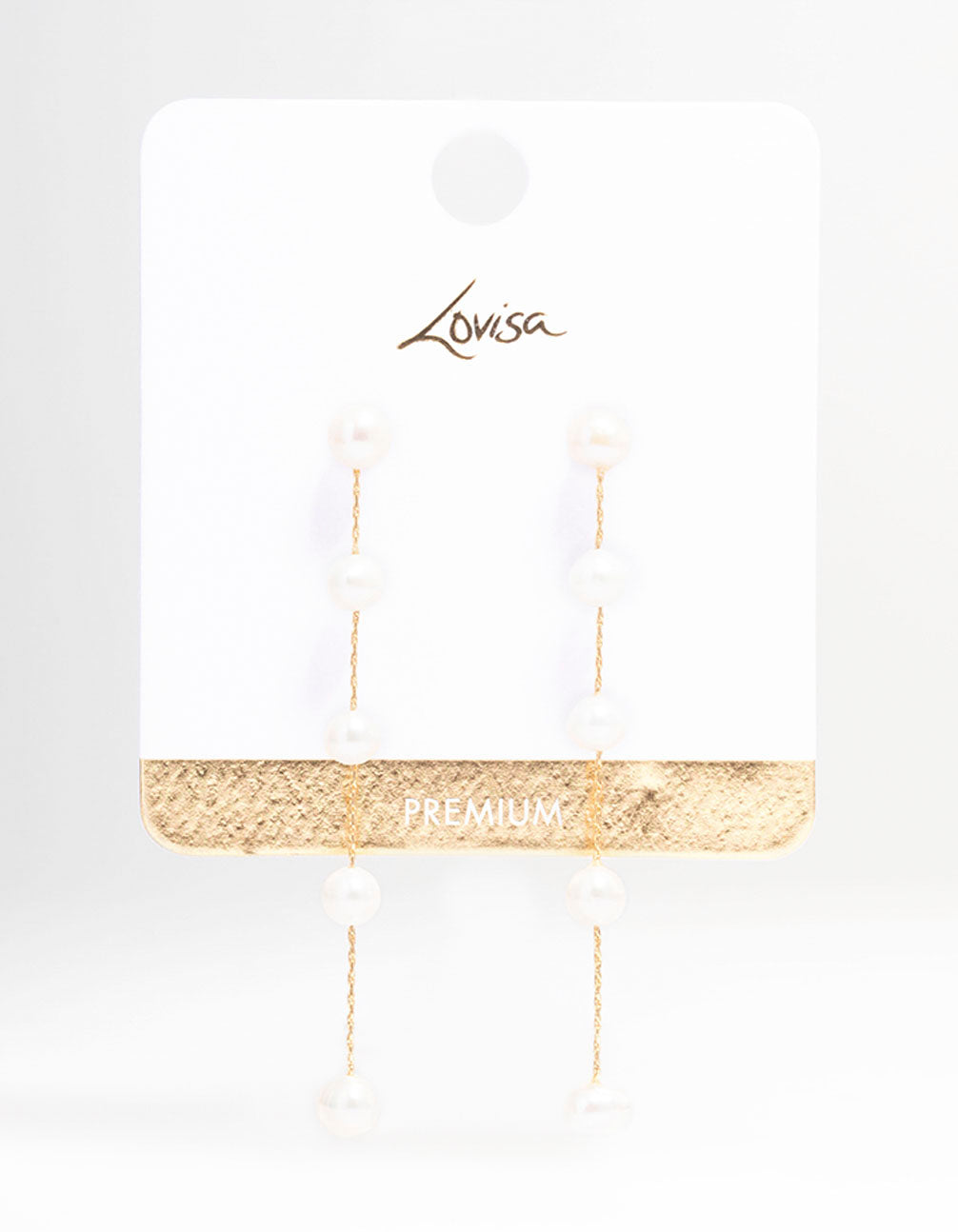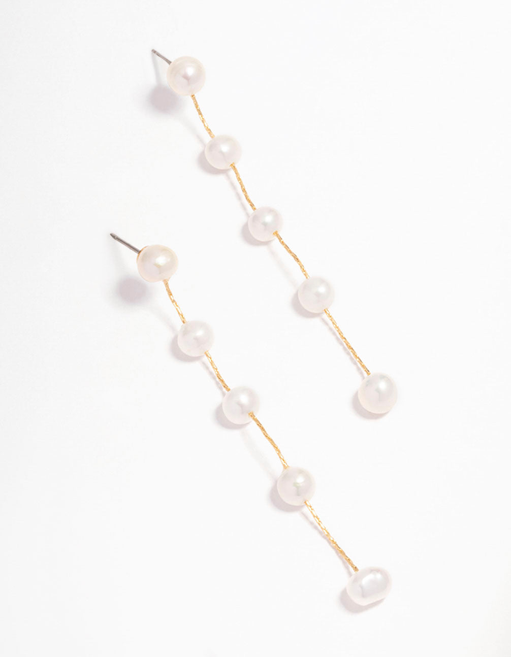 Gold Plated Freshwater Pearl Long Drop Earrings