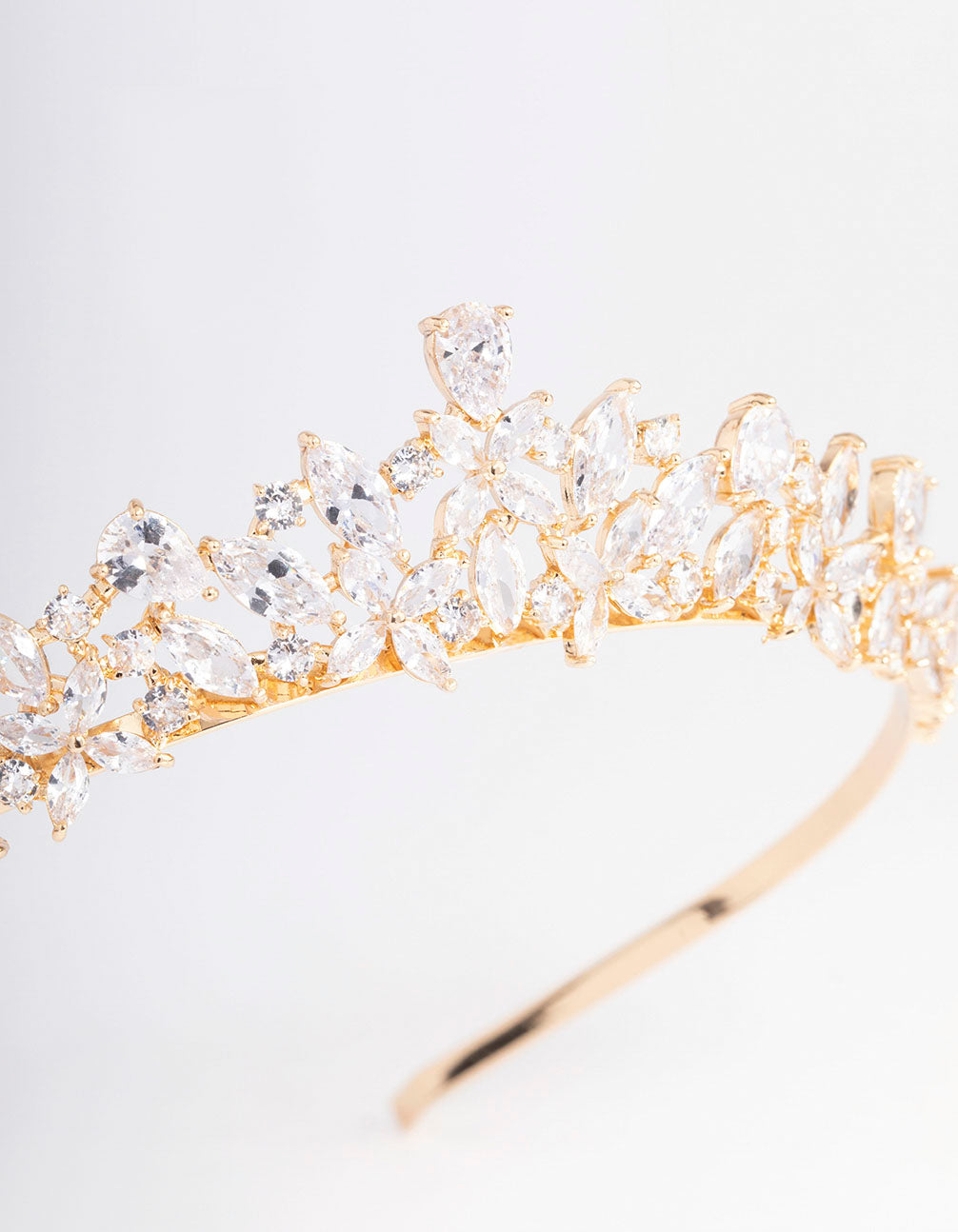 Gold Cubic Zirconia Mixed Marquise Floral Hair Crown