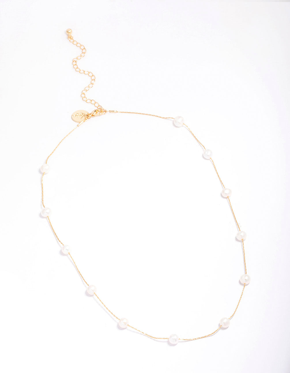 Gold Plated Freshwater Pearl Dotted Fine Short Necklace