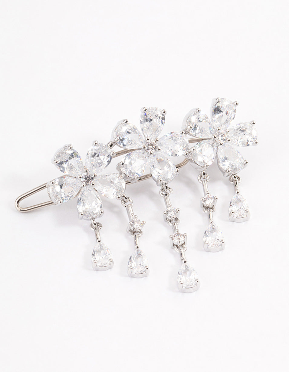 Silver Cubic Zirconia Triple Flower Droplet Hair Clips Pack
