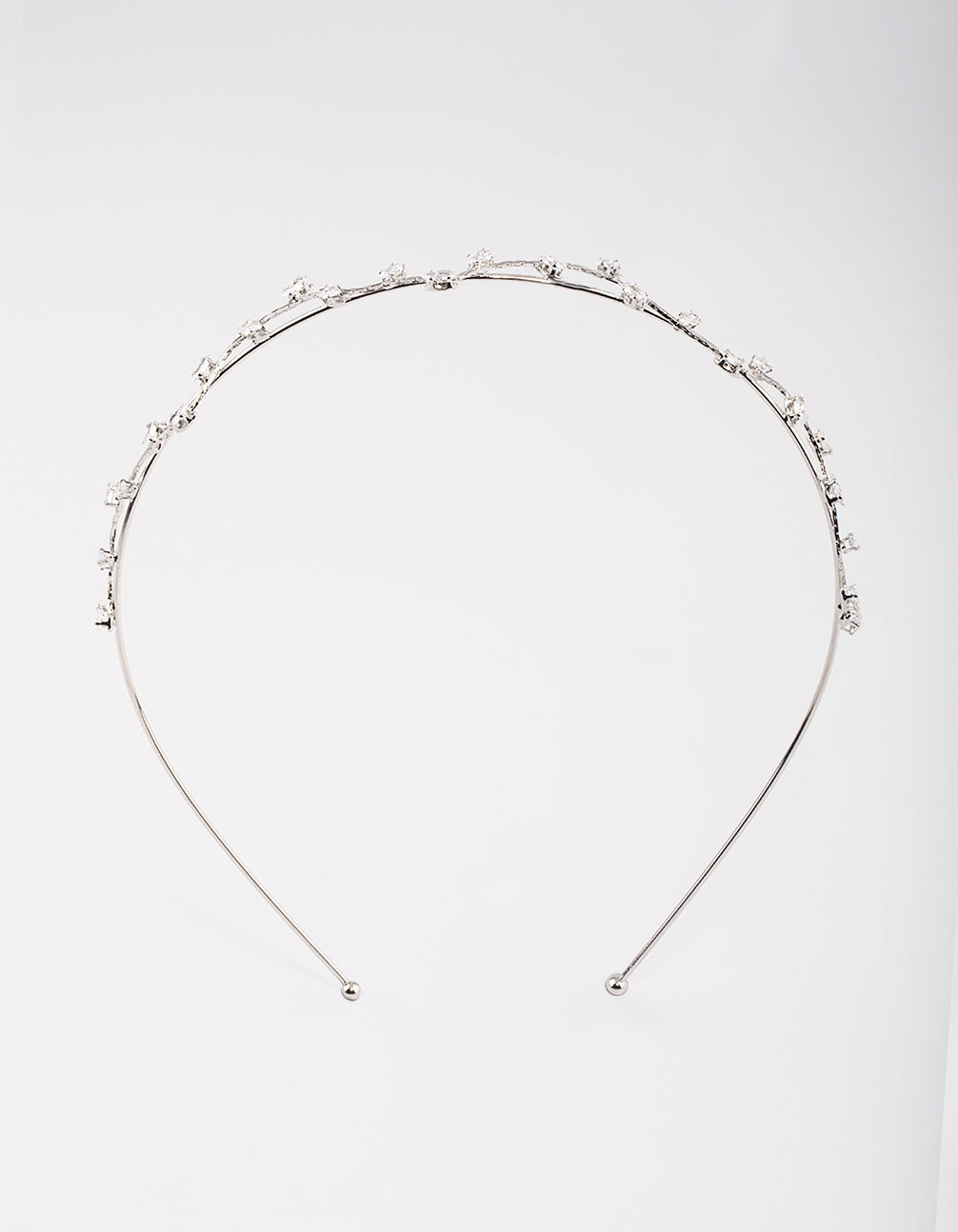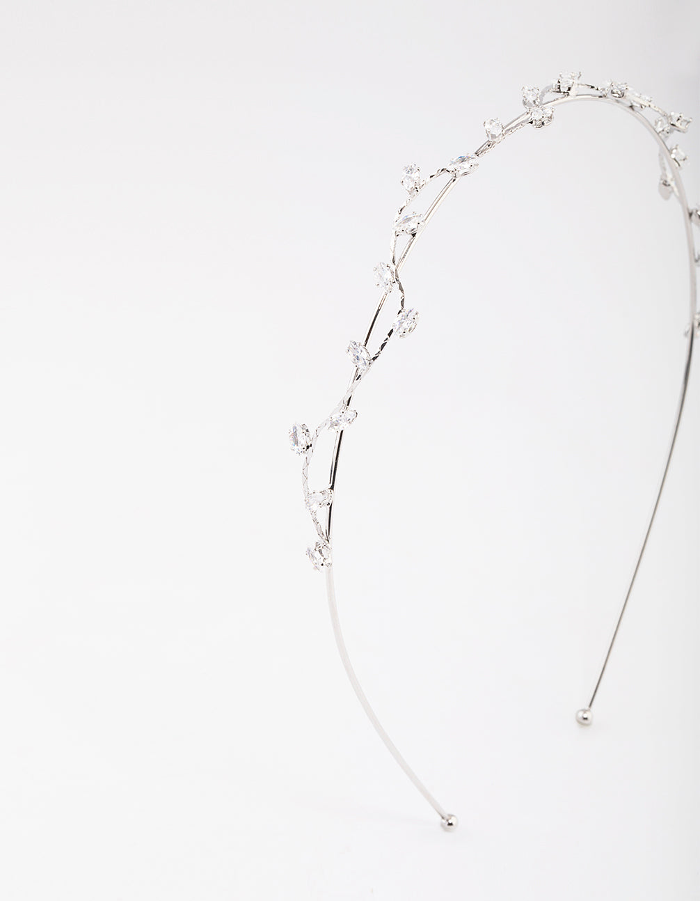 This dainty headband features a gold setting and vine design, encrusted with delicate cubic zirconia crystals for a feminine touch.