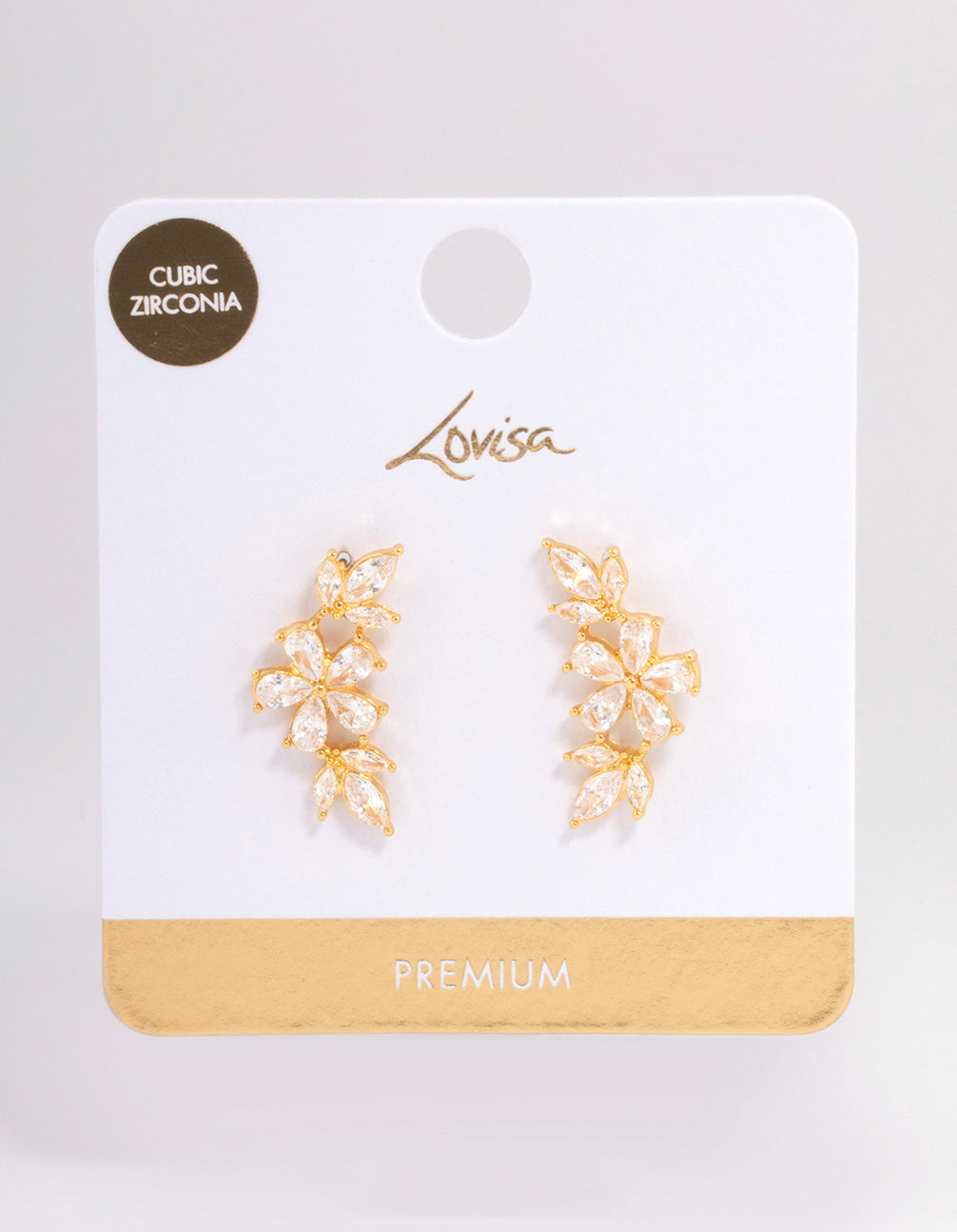 Gold Plated Cubic Zirconia Flower Clawler Stud Earrings