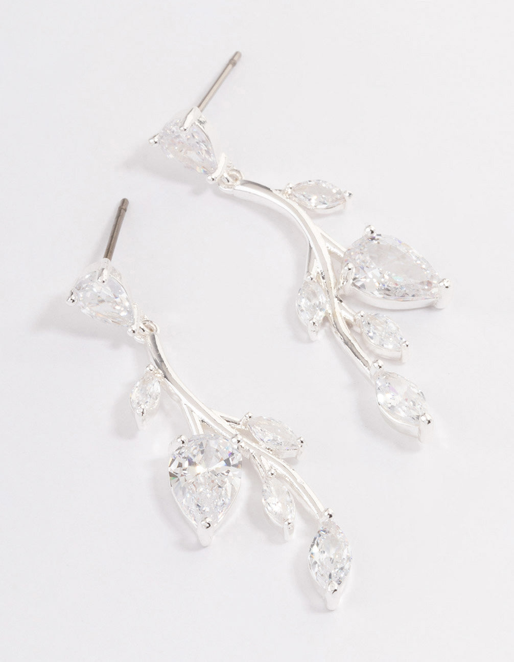 Silver Plated Cubic Zirconia Fern Drop Earrings Silver Plated Cubic Zirconia Fern Drop Earrings Silver Plated Cubic Zirconia Fern Drop Earrings