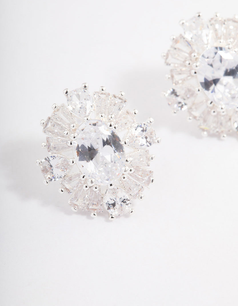 Silver Plated Cubic Zirconia Oval Halo Stud Earrings Silver Plated Cubic Zirconia Oval Halo Stud Earrings Silver Plated Cubic Zirconia Oval Halo Stud Earrings