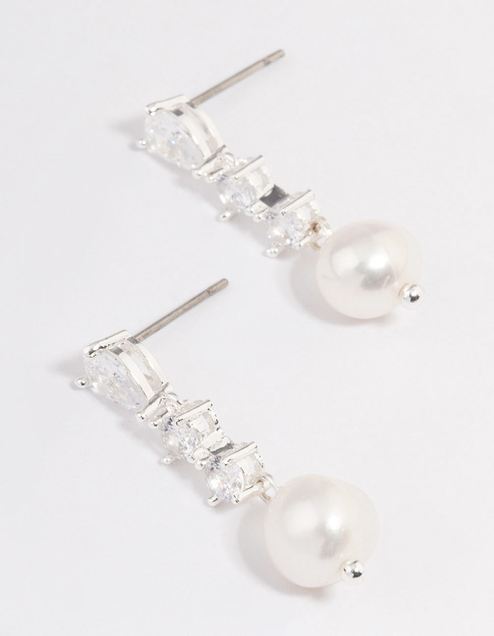 Silver Plated Cubic Zirconia Pearl Small Drop Earrings