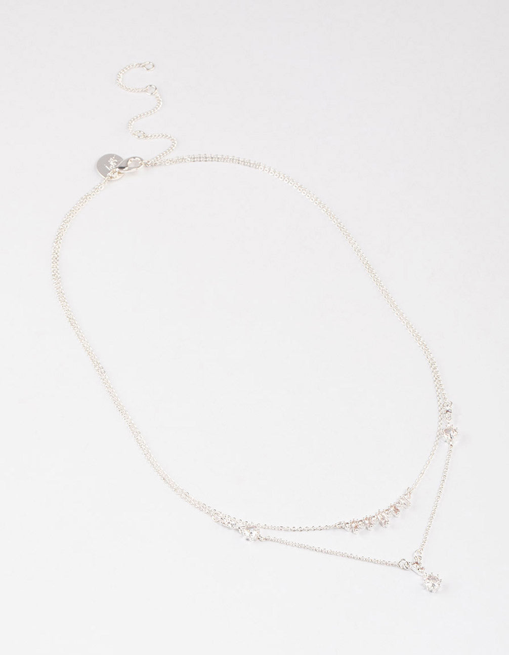 Silver Plated Dainty Cubic Zirconia Double Layer Necklace