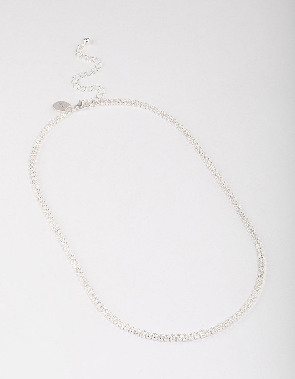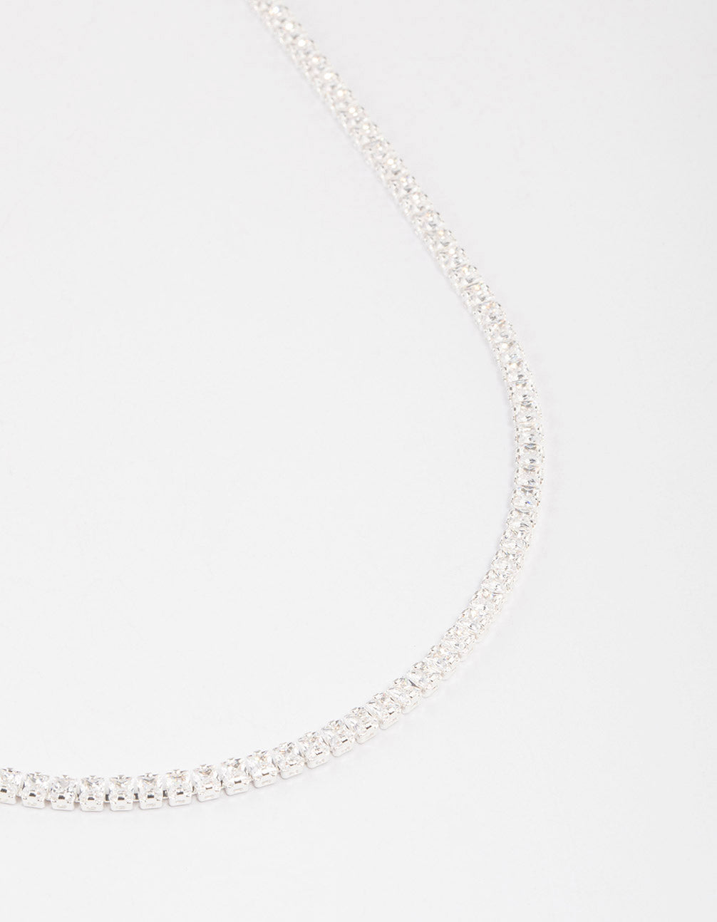 Silver Plated Fine Cubic Zirconia Cupchain Tennis Necklace