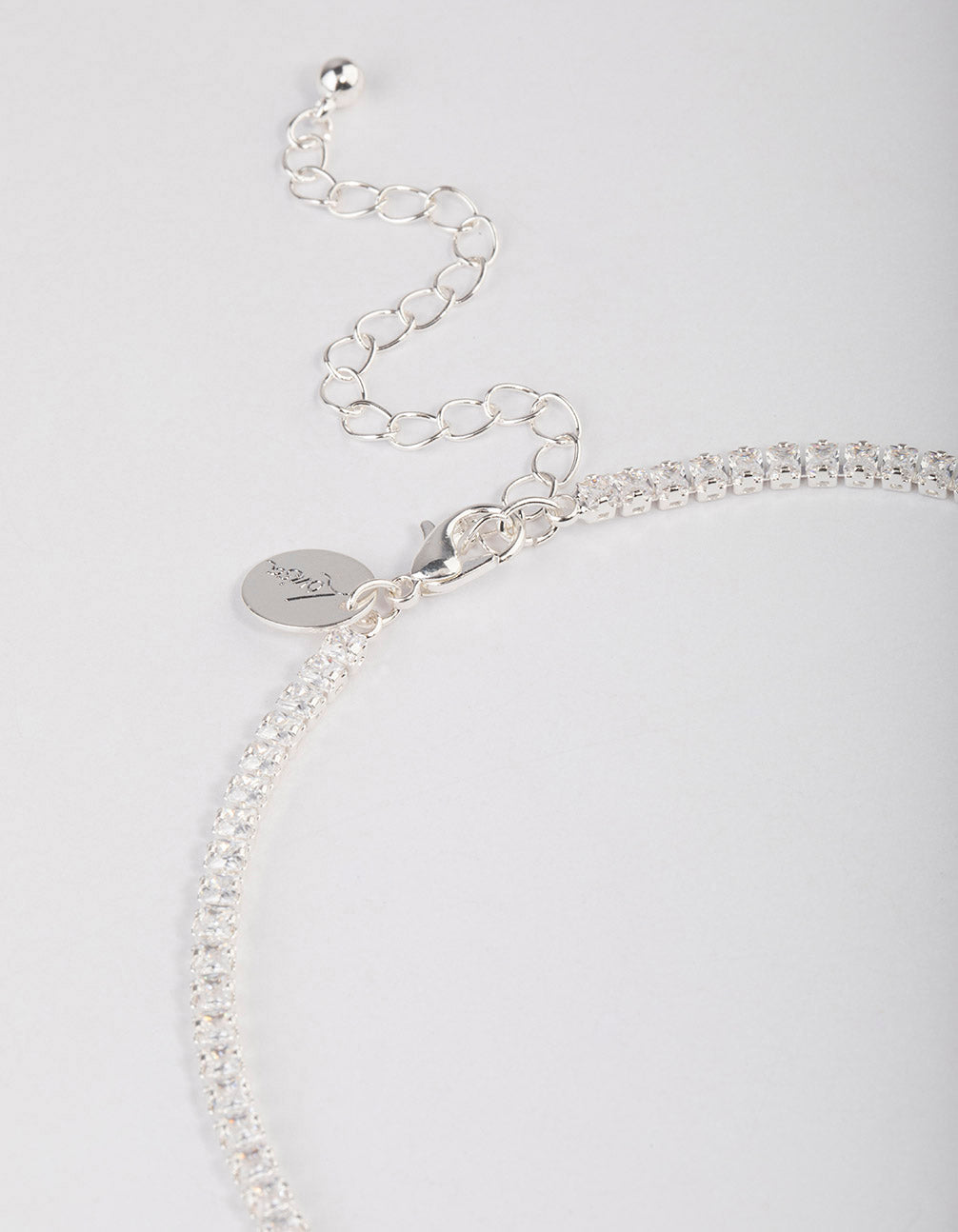 This necklace features a silver setting and is encrusted with delicate cubic zirconia crystals for a glamorous touch.