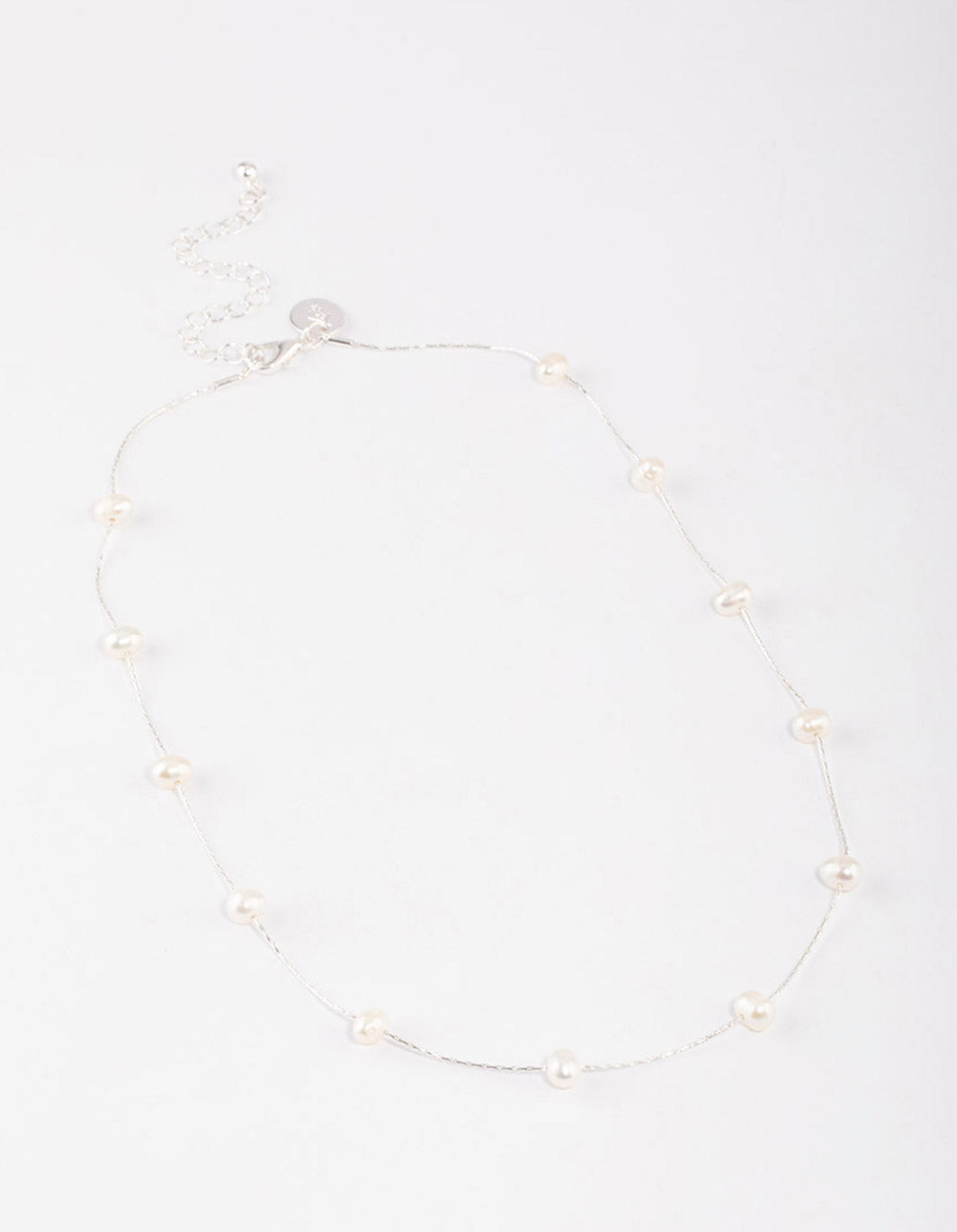 Silver Plated Freshwater Pearl Dotted Fine Necklace Silver Plated Freshwater Pearl Dotted Fine Necklace Silver Plated Freshwater Pearl Dotted Fine Necklace