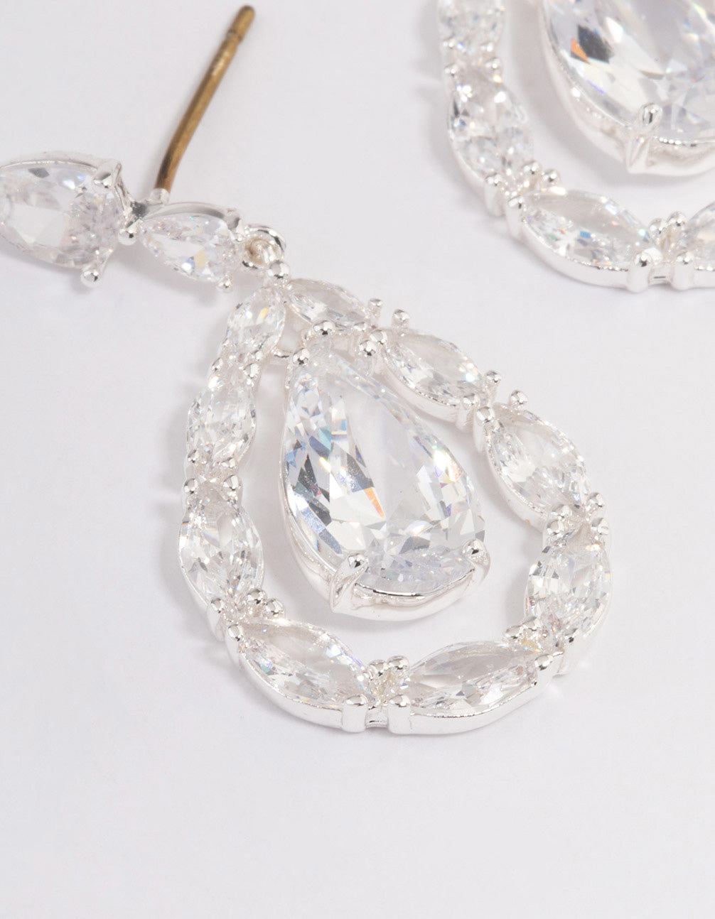 Silver Plated Cubic Zirconia Drop Stud Earrings