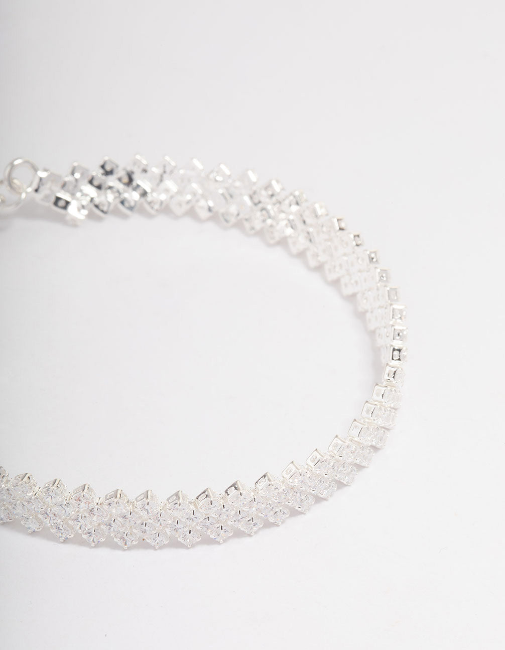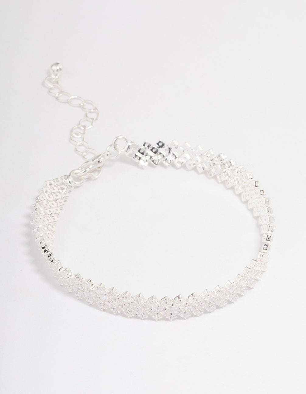 - This diamond bracelet is crafted with genuine silver plating for long-lasting shine and features a diagonal pattern for added interest.