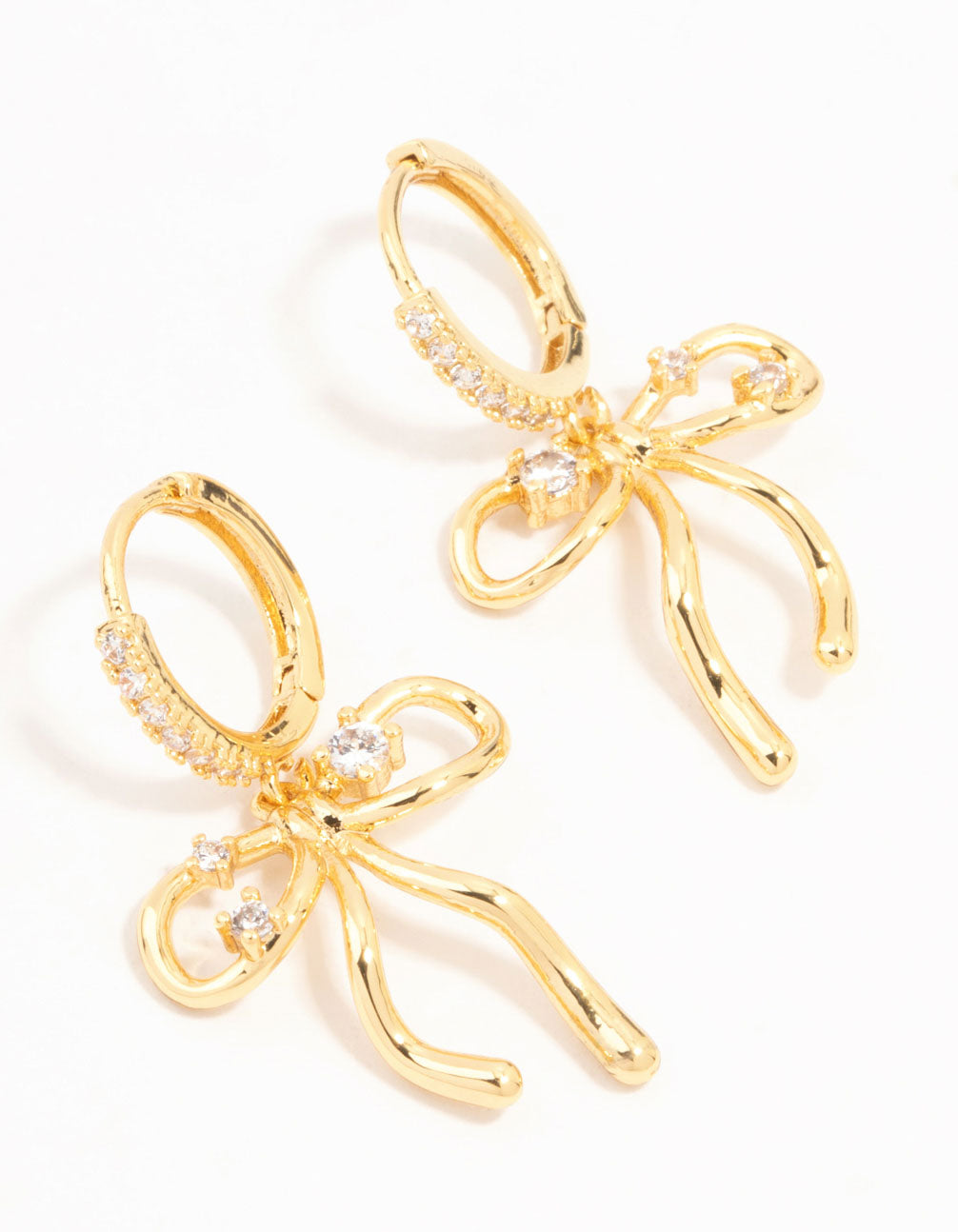 Real Gold Plated Cubic Zirconia Speckled Bow Huggie Earrings