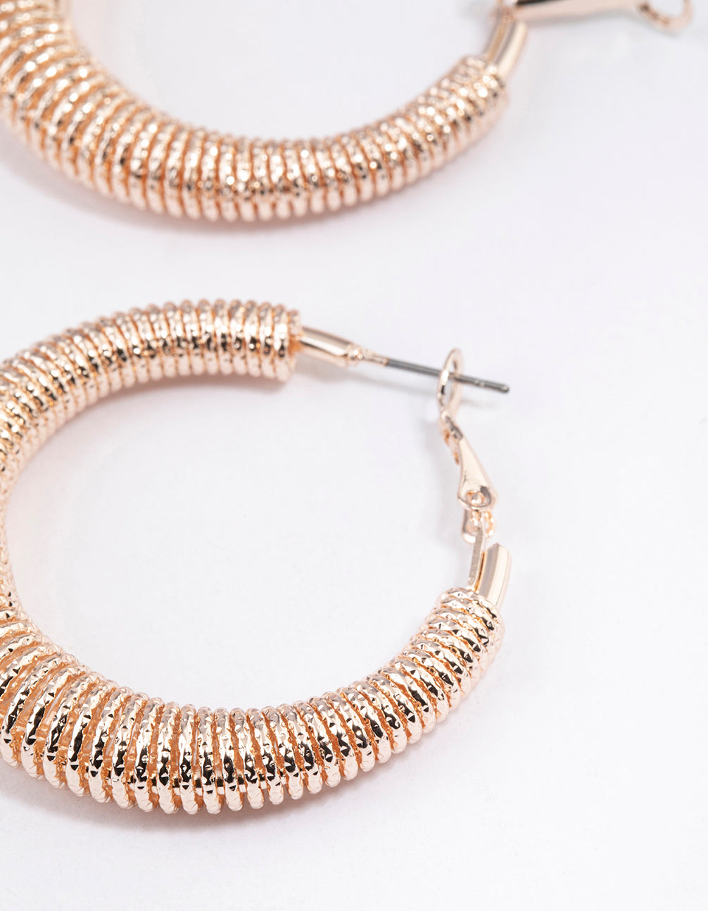 - Pair these Rose Gold Textured Threader Hoop Earrings with a simple pendant necklace for a timeless look.