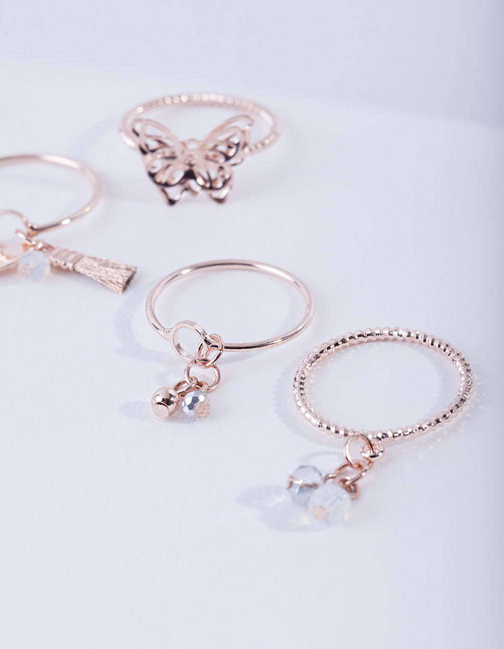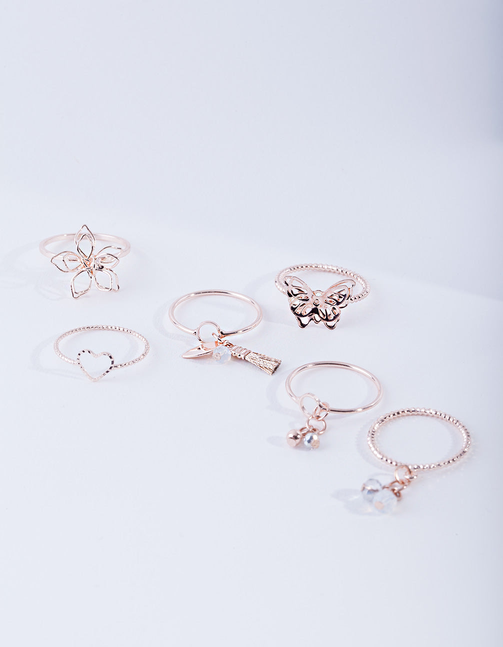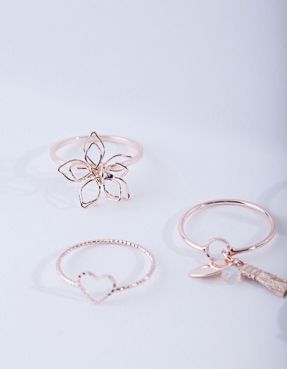 Ring stacking is a major trend. Mix and match to customise your look. This pack features textured nature inspired rings in a rose gold tone.