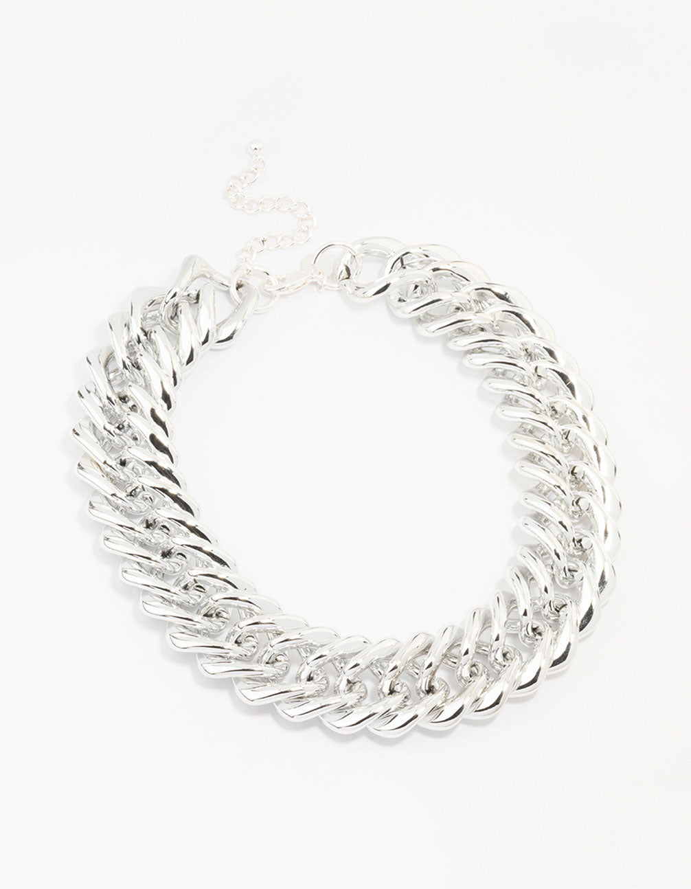 Level up your style with this bold chunky chain necklace! The modern, edgy design boasts thick silver silver chains that catch the light for a glamorous shine. Perfect for creating a statement that's as fun as it is fierce.