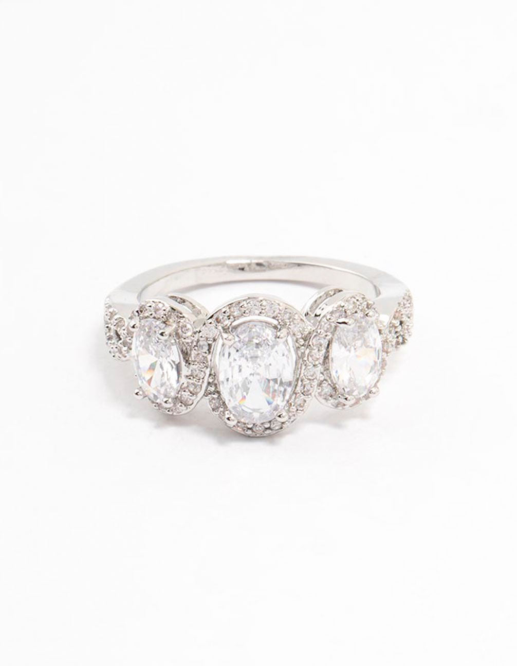 Elevate your style with the captivating Silver Oval Trio Cubic Zirconia Ring. Featuring three sparkling oval-cut stones and cubic zirconia crystals , this timeless ring adds glamour to any outfit, perfect for special occasions or everyday wear.