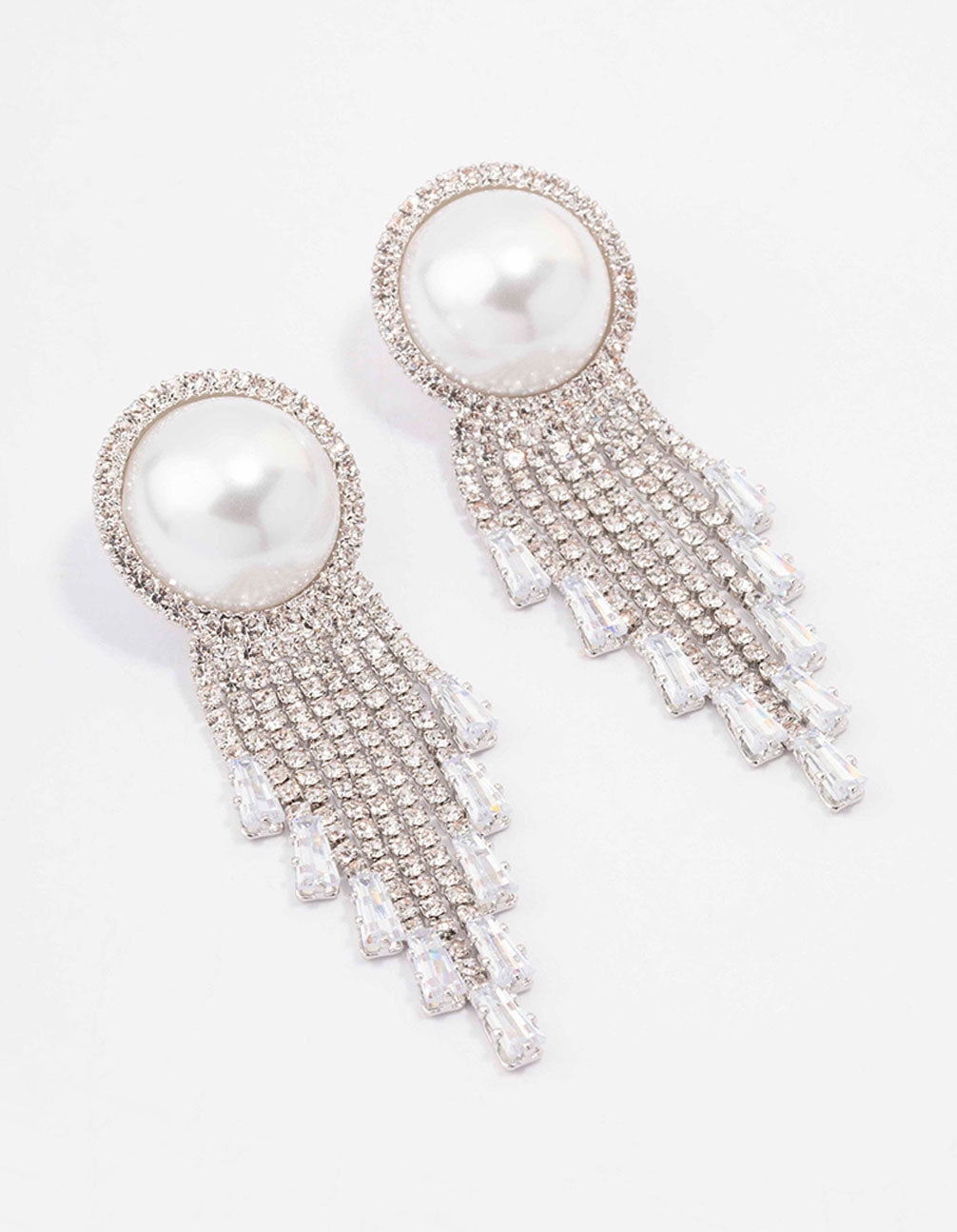Silver Oversized Pearl Cup Chain Diamante Earrings Silver Oversized Pearl Cup Chain Diamante Earrings Silver Oversized Pearl Cup Chain Diamante Earrings