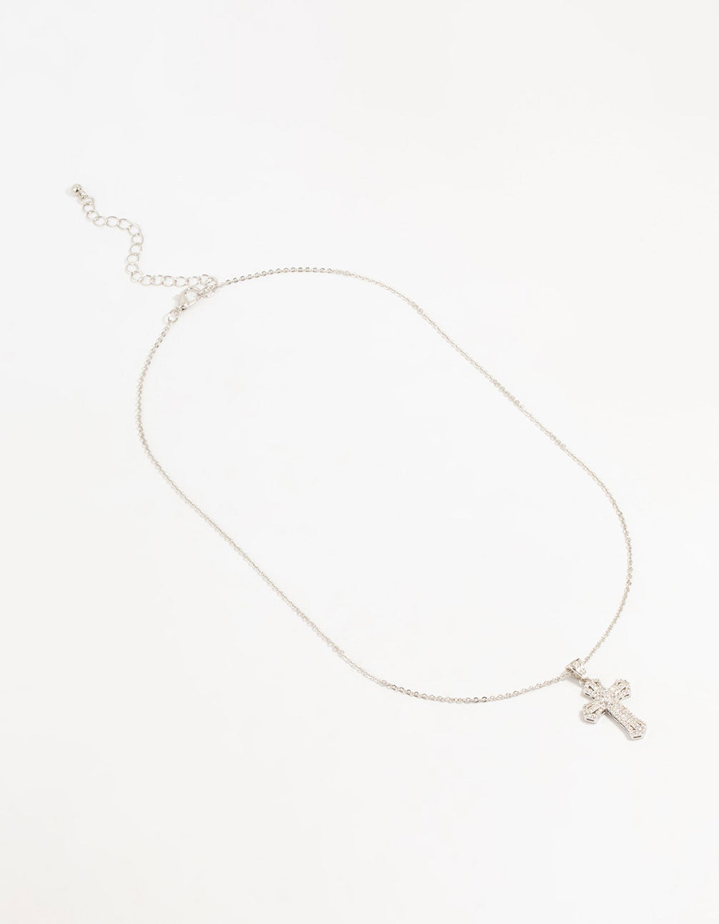 Bring some elegance with this chic silver-plated necklace! Featuring a dazzling cubic zirconia cross pendant, it's the perfect touch of sparkle and sophistication.