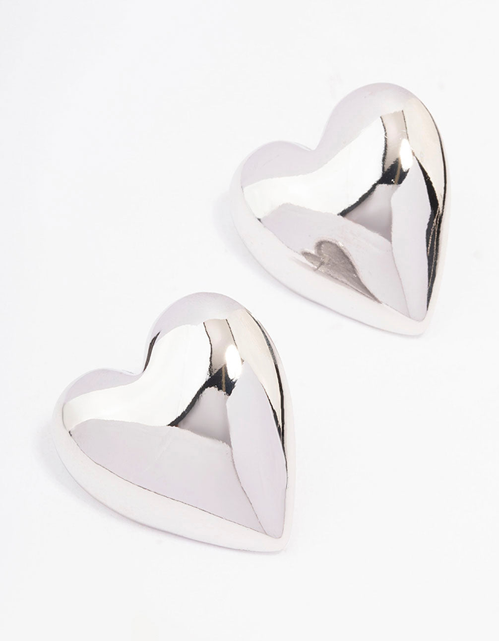 These stunning silver-toned stud earrings feature a stylish heart design, perfect for pairing with any outfit.