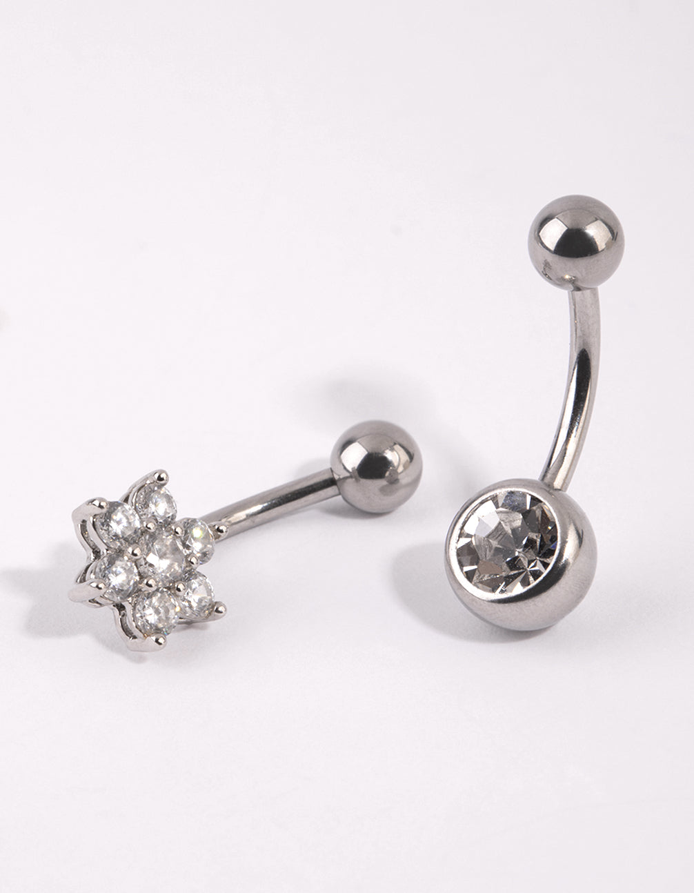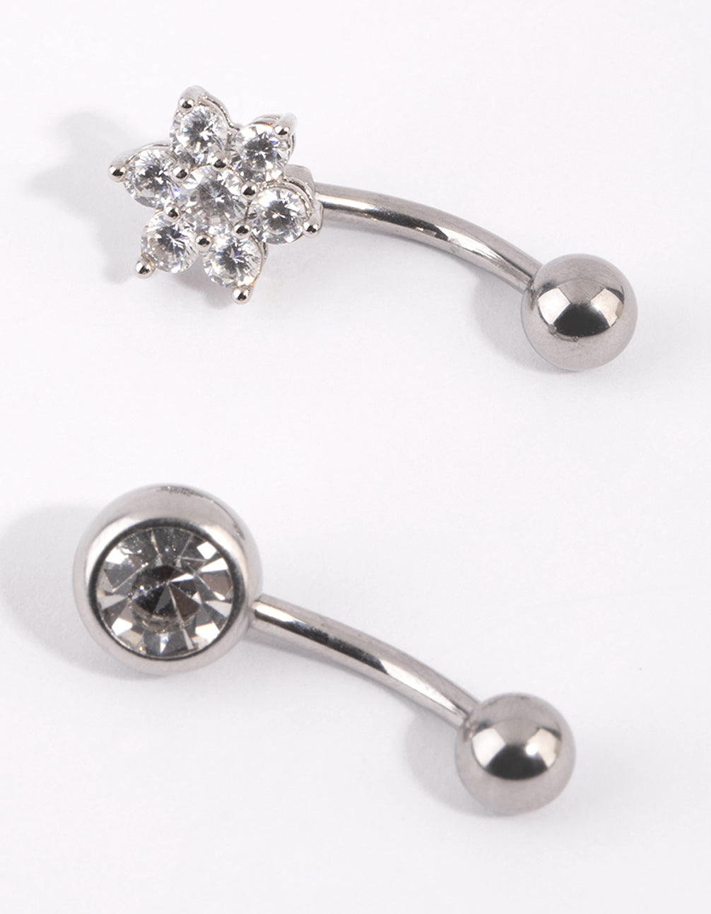 Surgical Steel Flower Diamante Belly Bar Set