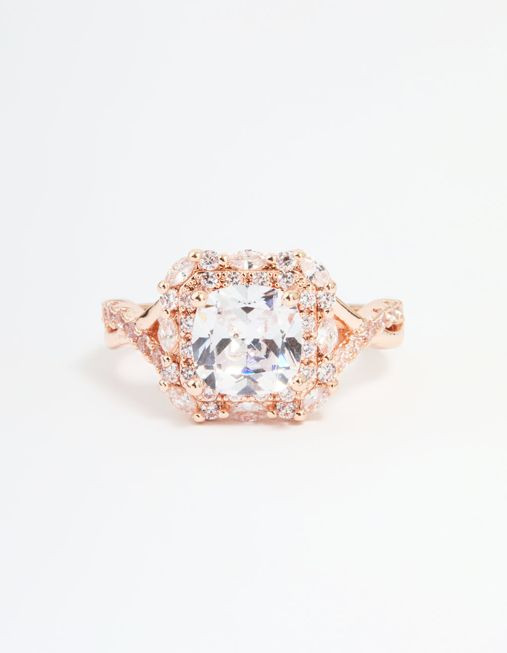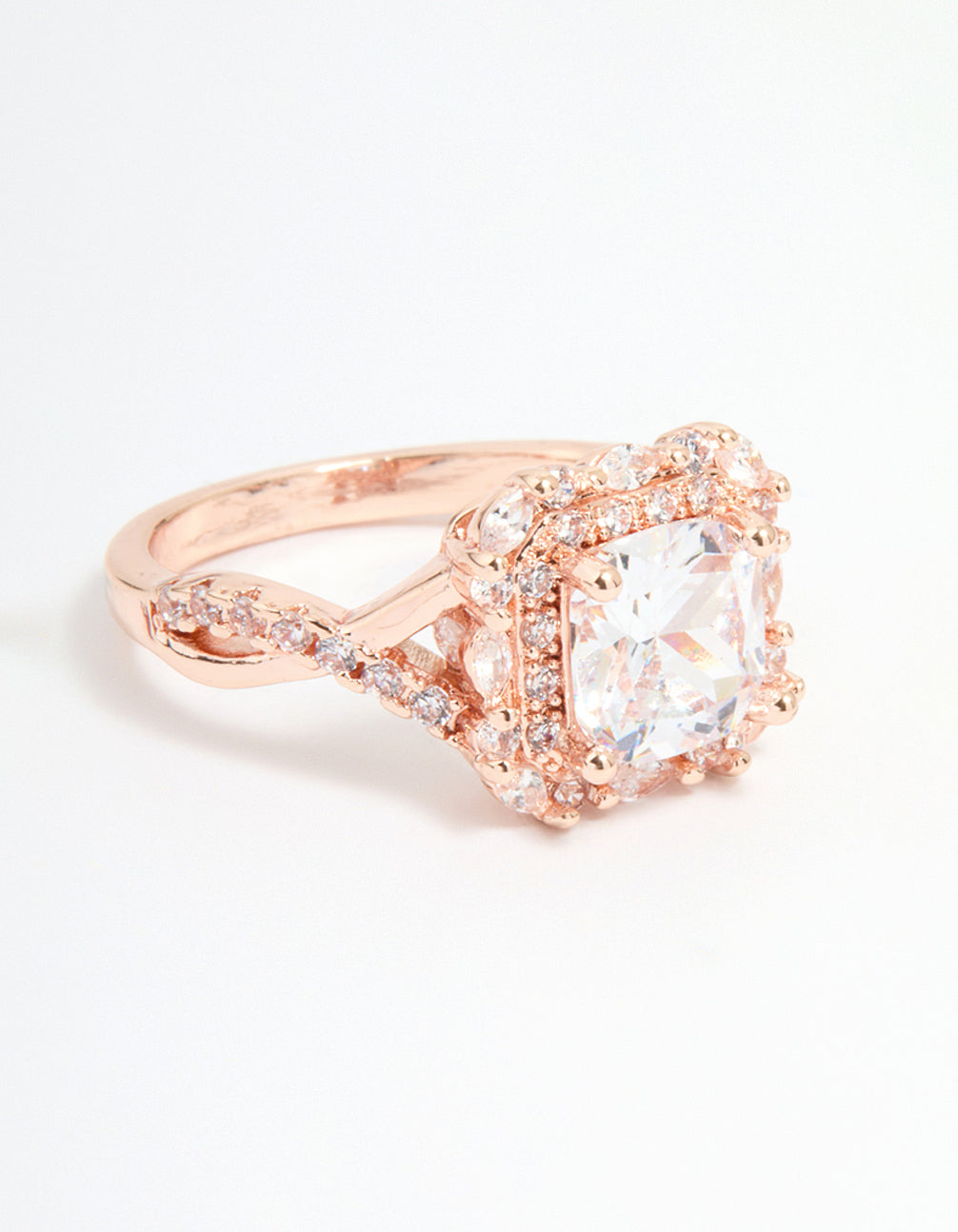 Rose Gold Cubic Zirconia Princess Halo Ring