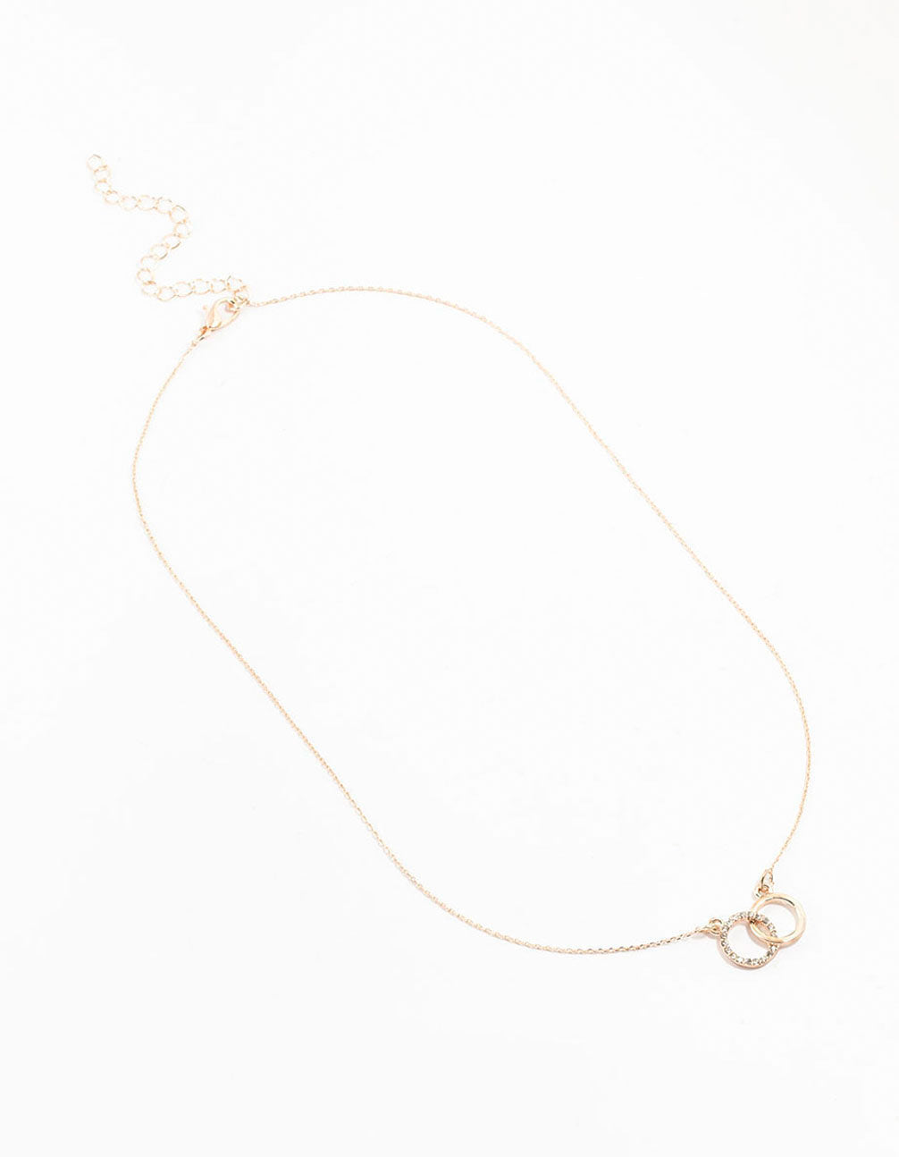 Rose Gold Diamante Double Circle Link Necklace