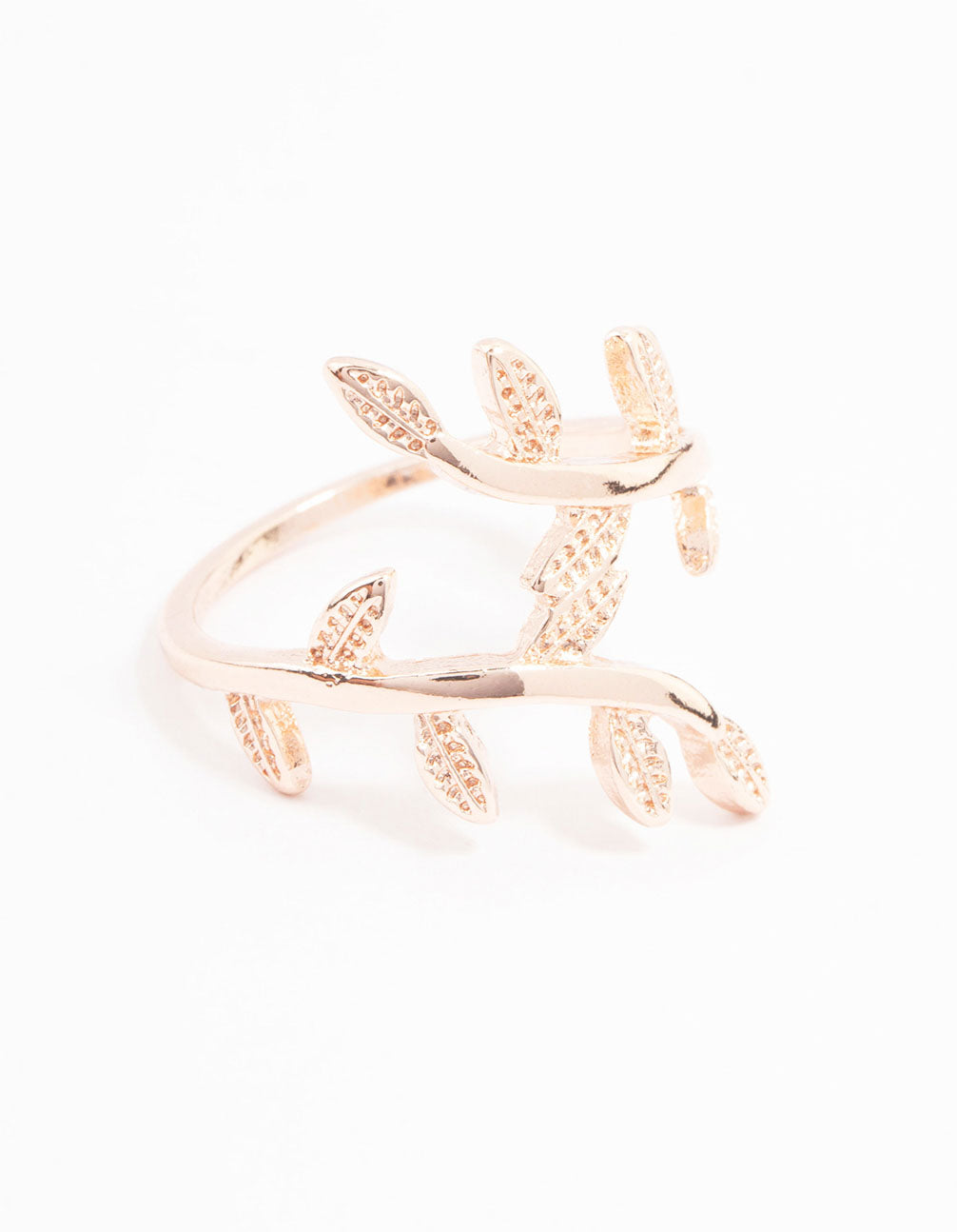 For a decorative addition to your stack, style this rose gold plated ring. This ring features a dainty band and swirling, vine design.