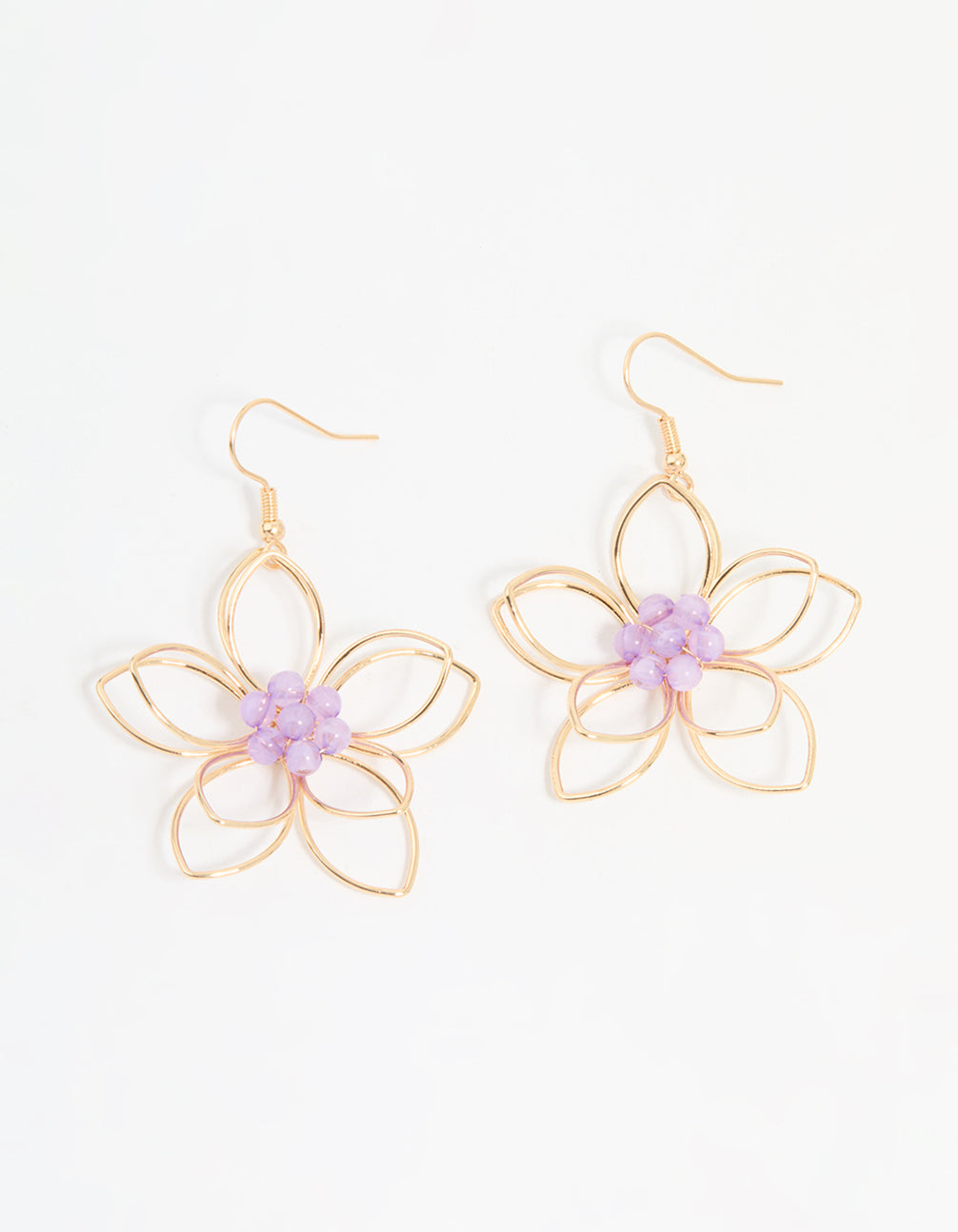 Rose Gold Purple Beaded 3D Flower Drop Earrings