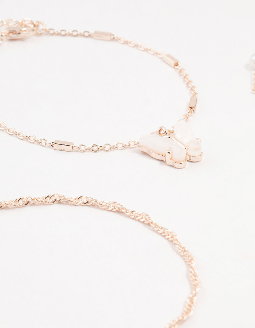 Rose Gold Stone Pearl Butterfly Bracelets 4-Pack