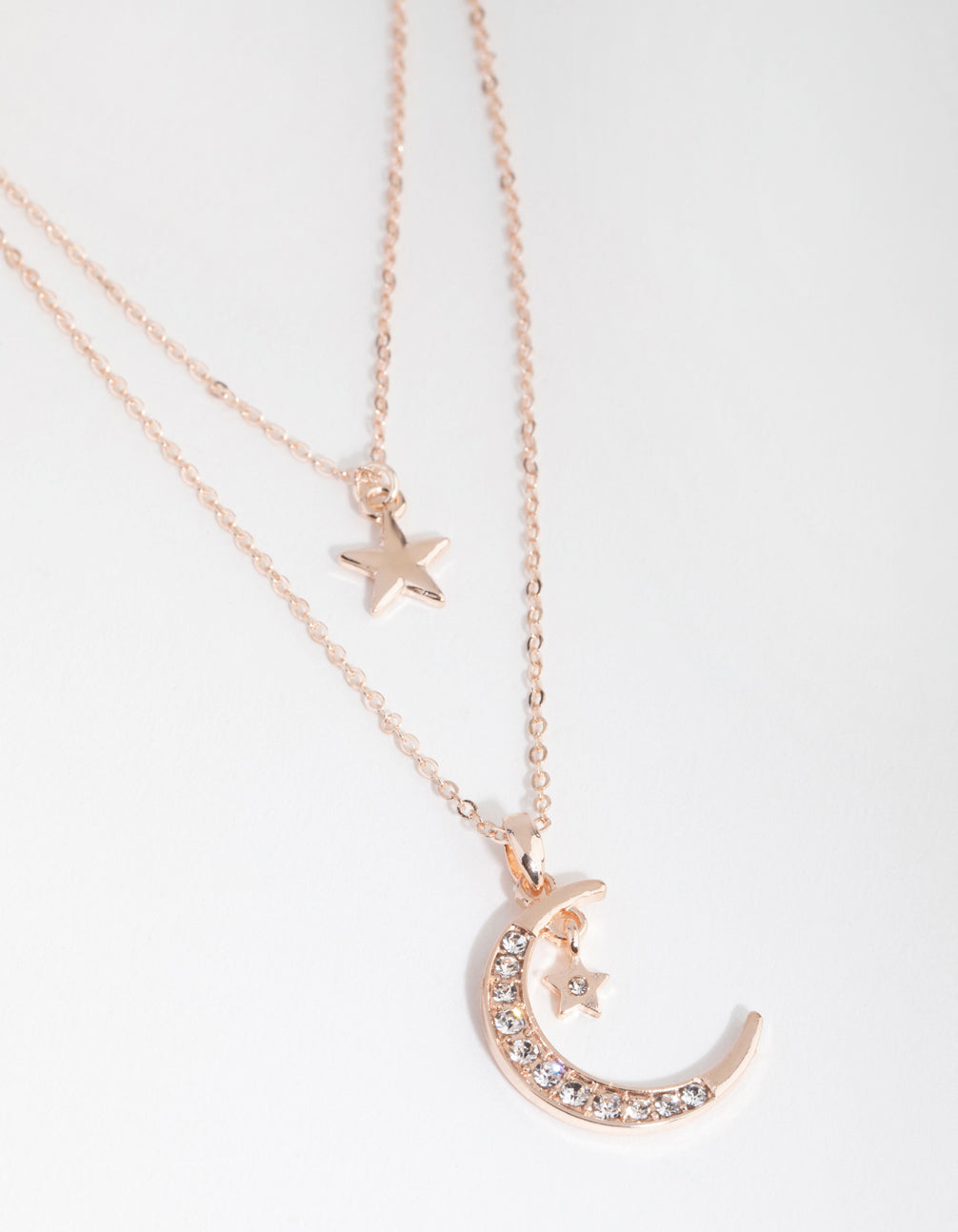 Rose Gold Diamante Moon & Star Necklace